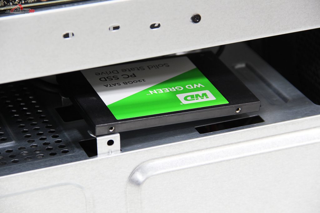 บริเวณด้านล่าง Case ยังสามารถที่จะติดตั้ง SSD หรือ HDD ขนาด 2.5″ ได้อีก 1 ช่อง  ส่วนตัว M.2 NVMe SSD PCIe3.0 x4 ที่แถมมานั้นน่าจะเป็นของ Kingston ขนาด 256GB