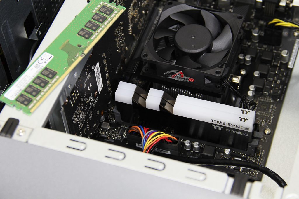 ส่วนทางด้านการ Upgrade นั้นถ้าเป็นในส่วนของ SSD/HDD นั้นก็ยังพอมีช่องให้ใส่ SSD 2.5″ และ HDD3.5″ ได้อยู่อีกอย่างละ 1 ช่อง โดยช่องเสียบ SATA3.0 6Gb/s ทั้งหมดจะมีอยู่ 4 ช่อง, ส่วนแรมนั้นให้มาเป็น DDR4-2666Mhz 8GB แถวเดียว ถ้าอยากจะทำการ Upgrade ก็จะใส่ได้ทั้งหมด 2xDIMM เต็มที่น่าจะได้ 32GB (16GBx2) ครับ  เรื่องของแสงสี RGB นั้นก็สามารถสั่ง AURA Sync ผ่านทาง Software ร่วมกับอุปกรณ์อื่นๆ ที่รองรับได้ด้วยเช่นกัน ซึ่งไฟ RGB ด้านหน้า Case นั้นก็ทำออกมาได้หรูหรามากเลยทีเดียว