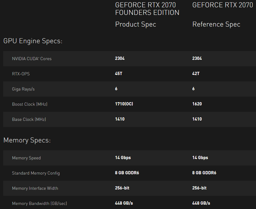 | GeForce | RTX 2080 Ti FE (Ref.) | RTX 2080 FE (Ref.) | RTX 2070 FE (Ref.) | ASUS RTX 2070 DUAL |