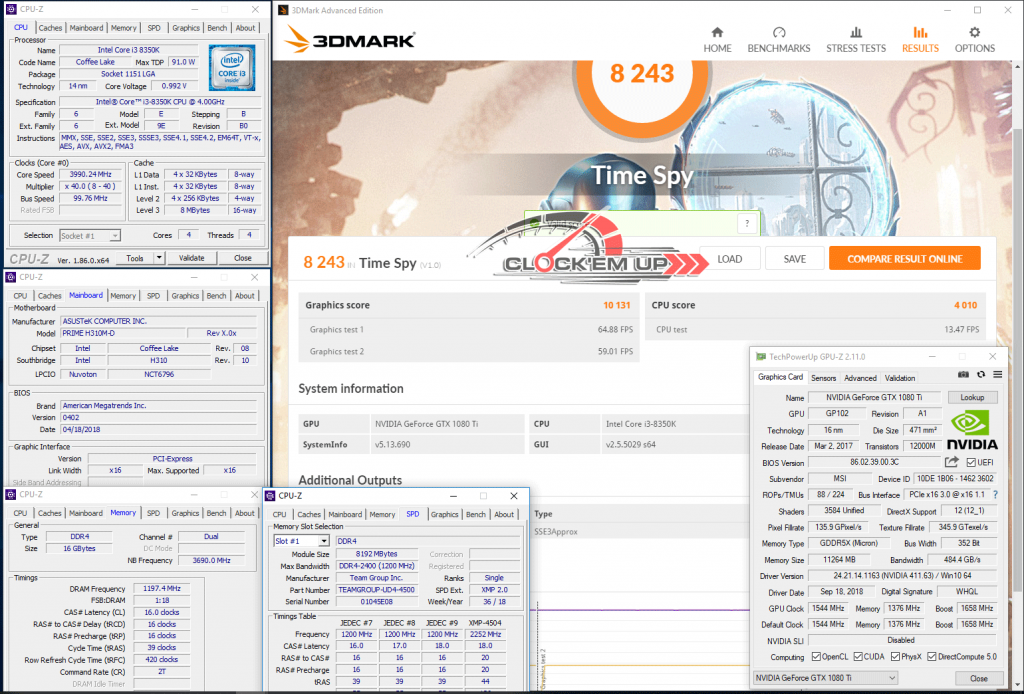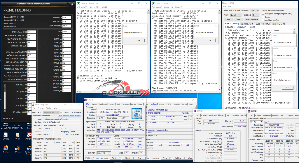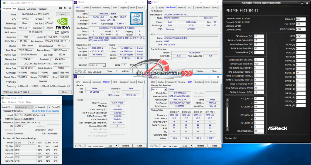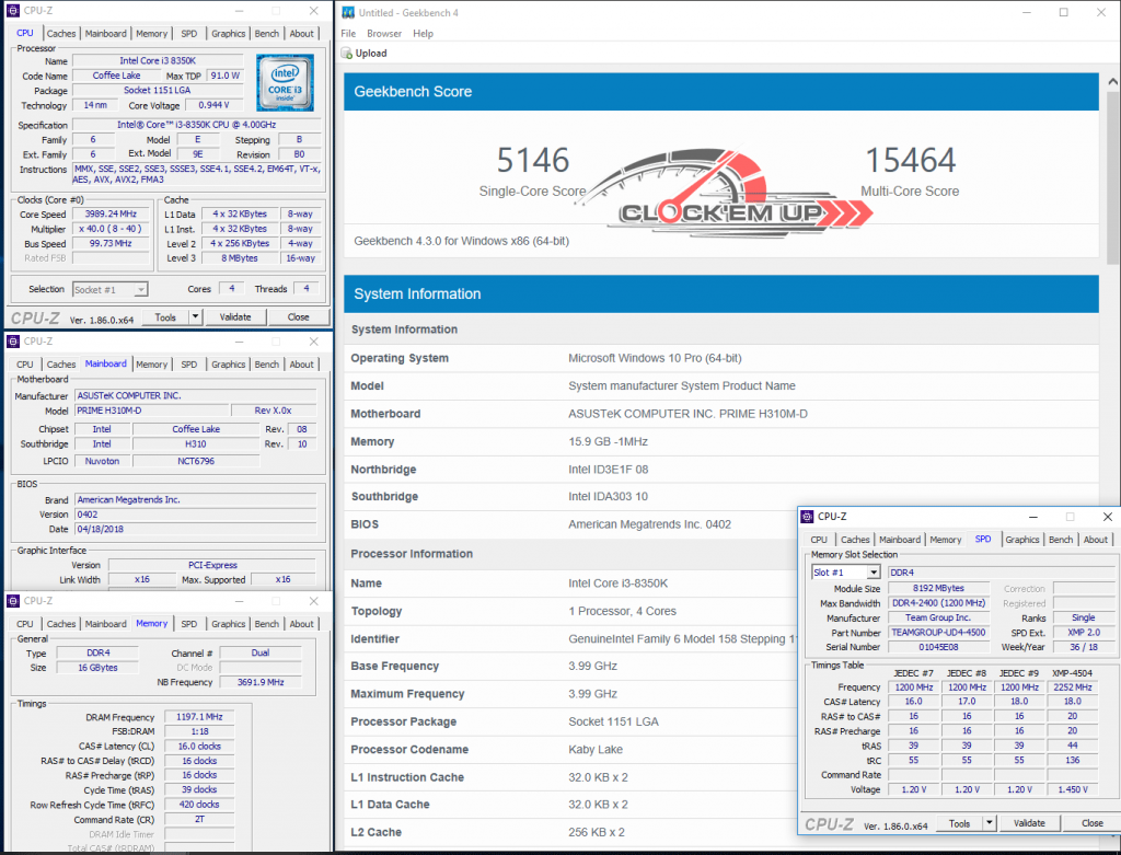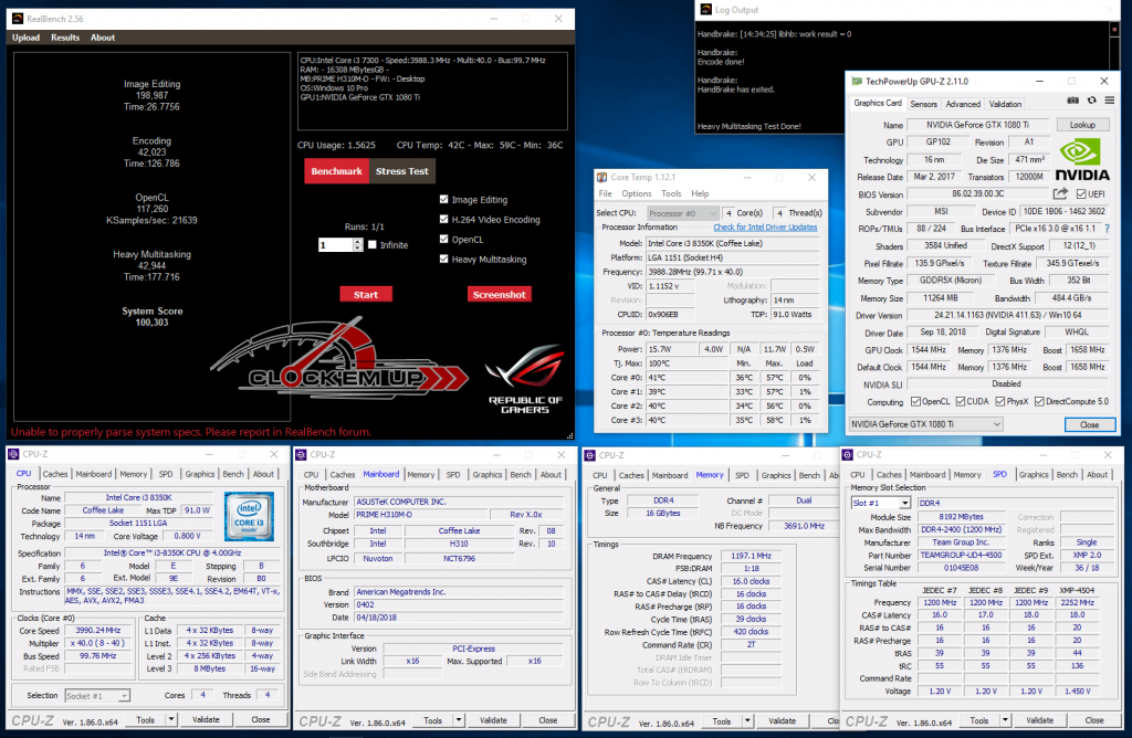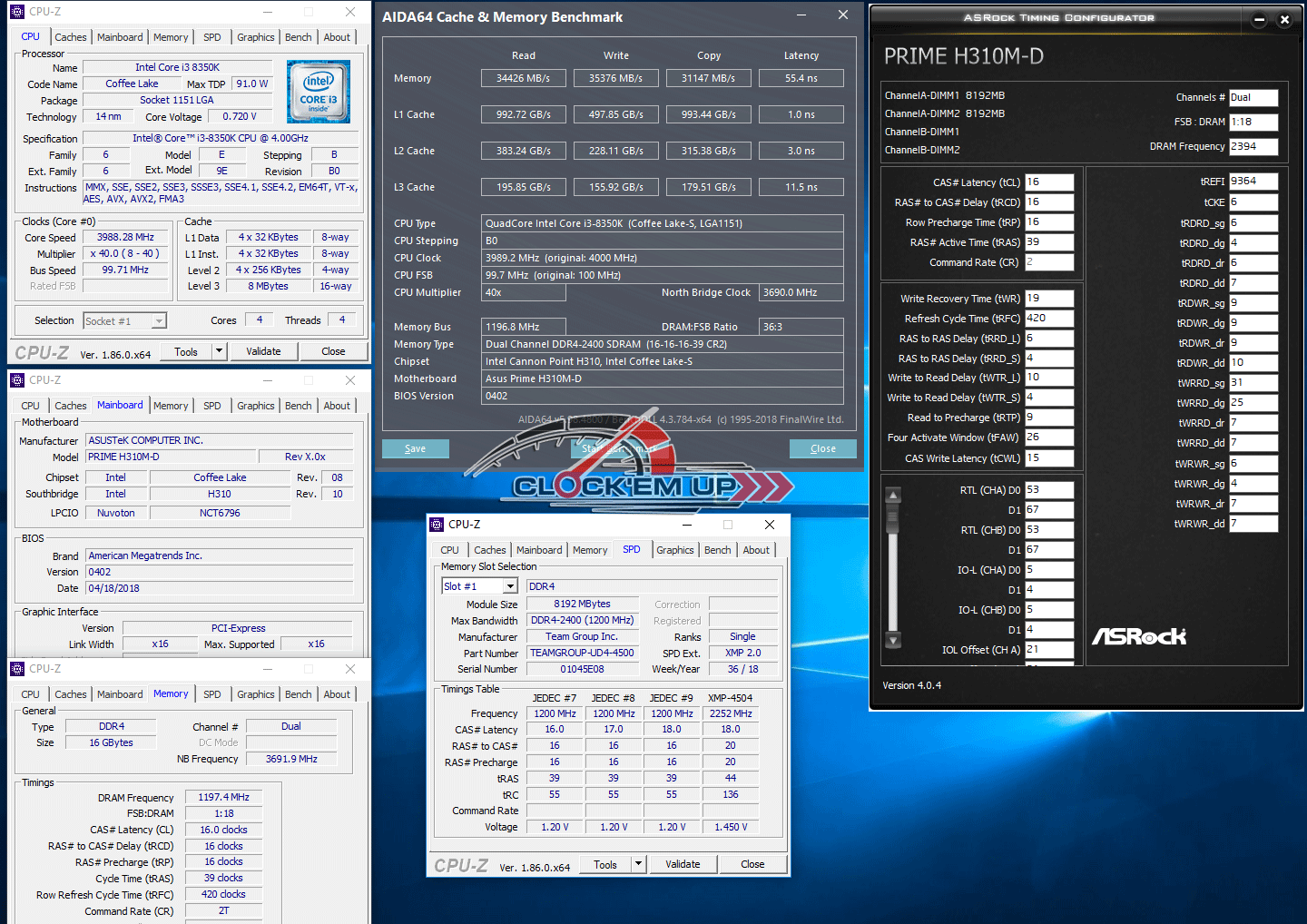 ภาพบรรยากาศในการทดสอบครั้งนี้ครับ โดยเราจะต่อใช้งานร่วมกับ CPU Intel Core i3-8350K 4C/4T โดยใช้ชุดระบายความร้อนของ Noctua NH-L9x65 ส่วนเมนโมรี DDR4 นั้นหยิบเอาของ T-Force XTREEM 4500CL18 คู่ละ 16GB มาเสียบใช้งาน ดังนั้นด้วยคุณสมบัติที่จำกัดของชิปเซ็ต Intel H310 จึงทำให้มันทำงานได้ตามความเร็วแรม Native ของ CPU ได้เท่านั้น กล่าวคือ DDR4-2400Mhz