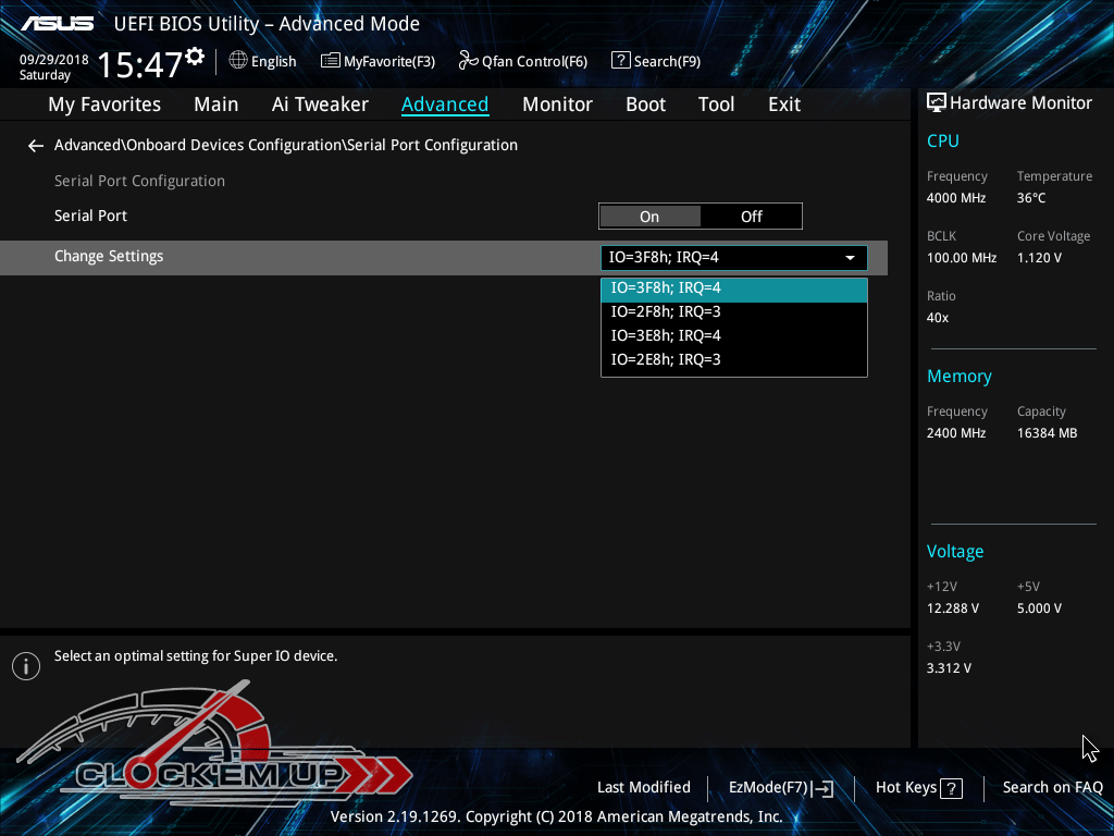 รายละเอียดของหน้าจอ UEFI BIOS ที่เราจับภาพมาใหเดูครับ ซึ่งก็จะมีหน้าที่สามารถปรับ IRQ ของช่องอุปกรณ์ที่ต่อผ่าน COM Port (Serial Port) และ LPT Port มาให้ Config ได้เผื่อว่าอุปกรณ์ต่อผ่านอุปกรณ์พวกนี้ IRQ อาจจะชนกัน