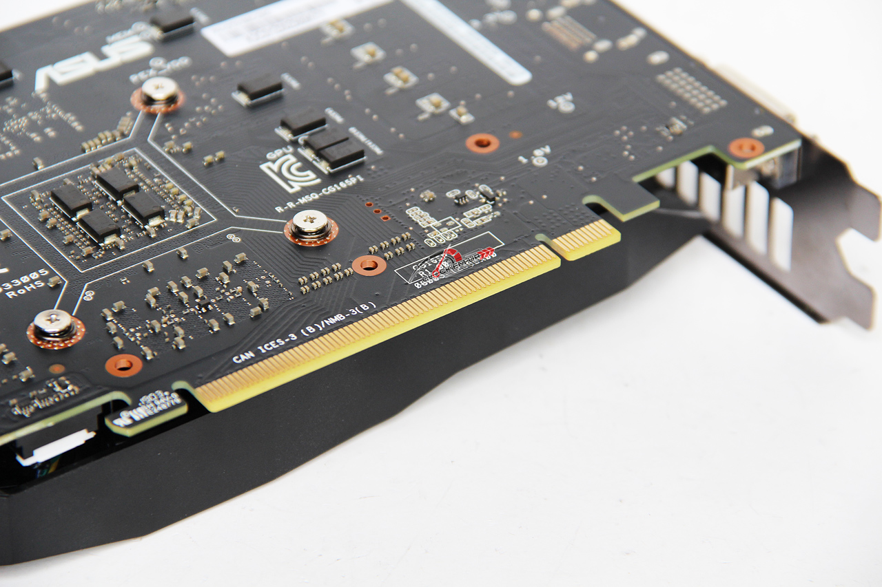 บริเวณด้านล่างของตัว Heatsink นั้นถ้าเรามองเข้าไป จะเห็นว่าทาง ASUS ได้ติดตั้ง Thermal Pad ซับความร้อนให้กับเม็ดแรม GDDR5 ขึ้นไปยังครีบระบายความร้อนของ Heatsink หลักด้วยนะครับ… ก็ดูแปลกๆ ดี ไม่แน่ใจเหมือนกันนะว่ามันจะช่วยดึงความร้อนออกจากเม็ดแรมได้ดีสักแค่ไหน ???