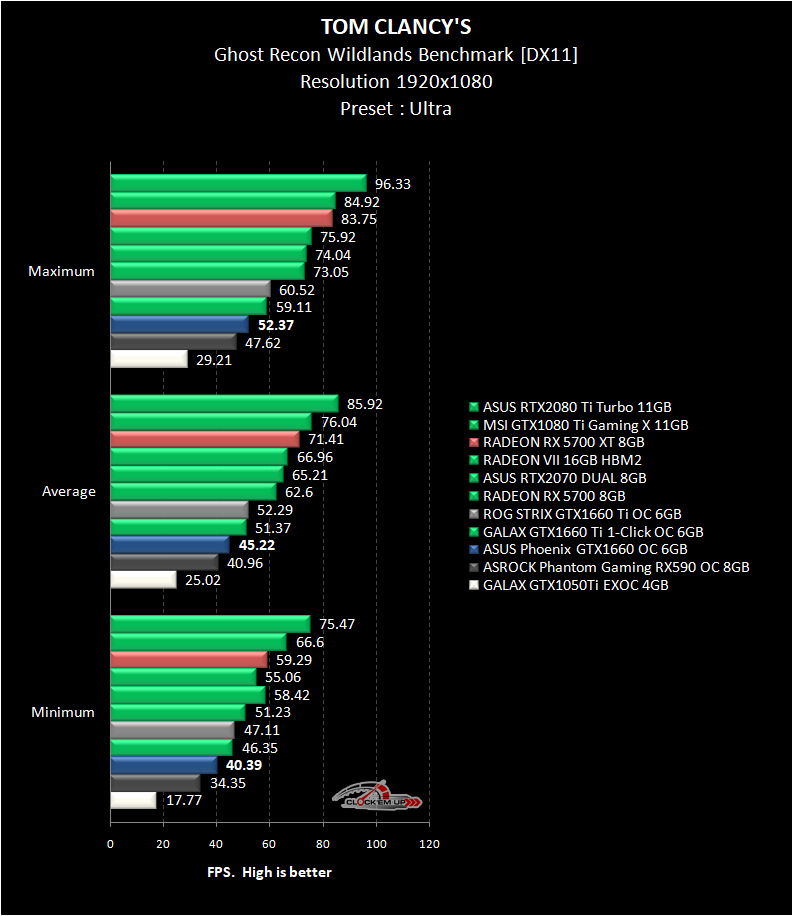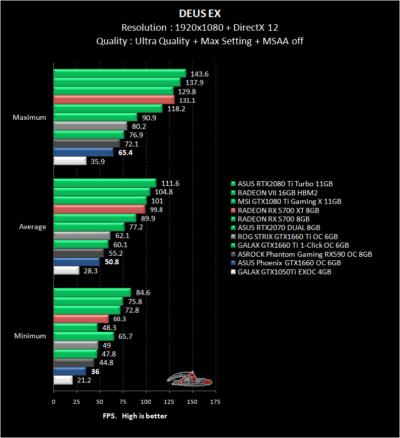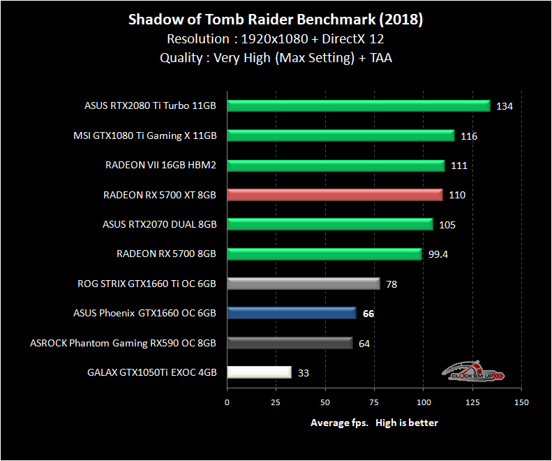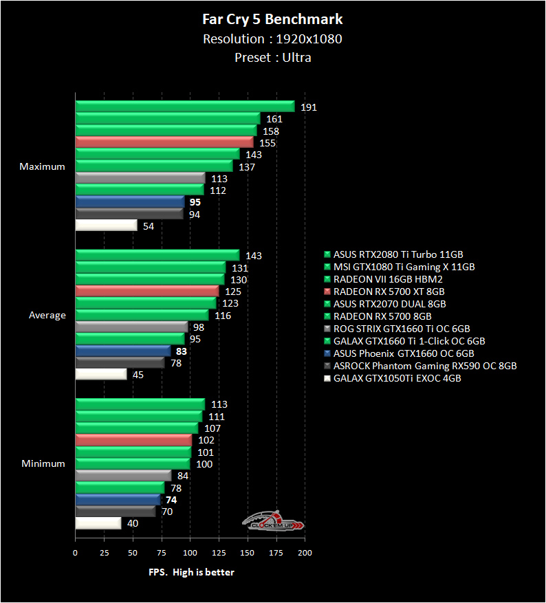 เอาล่ะครับมาชมถึงประสิทธิภาพการทดสอบเรื่องการเล่นเกมและ Benchmark วัดประสิทธิภาพจากตัวเกมต่างๆ กันดีกว่าครับ ซึ่งโดยภาพรวมแล้วในหลายๆ เกมทดสอบนั้นเจ้า ASUS PHOENIX Geforce GTX 1660 OC 6GB ตัวนี้มีประสิทธิภาพที่เหนือกว่า RX 590 อยู่ราวๆ 2-7 fps. เฉลี่ยรวมในหลายๆ เกมทดสอบ และก็มีบางเกมอย่าง BFV นั้นเจ้า RX 590 กลับทำเฟรมเรทเฉลี่ยได้ดีกว่าราวๆ 2.67fps. เฉลี่ย และถ้ามองโดยภาพรวมถึงประสิทธิภาพ/อัตราการใช้พลังงานด้วยแล้ว ดูเหมือน GTX 1660 จะกินขาดเลยล่ะครับ โดยที่มันกินไฟน้อยกว่า RX 590 มากถึง 120watt กันเลยทีเดียว ฮ่าๆ….