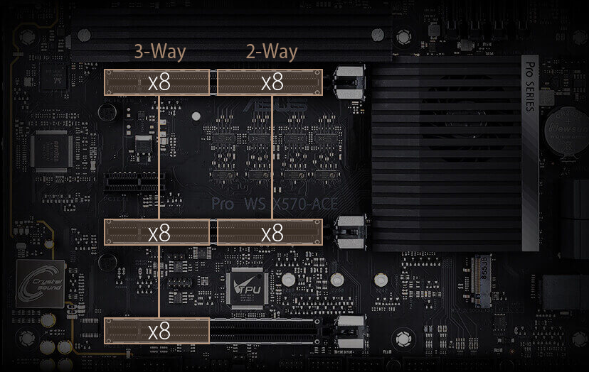 - Three PCIe 4.0 x16 slots with optimized lane arrangement of 3-way x8/x8/x8 to accelerate an increasingly diverse array of workloads