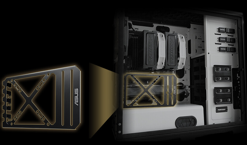 อุปกรณ์เสริมพิเศษชุดค้ำการ์ดจอที่สามารถค้ำการ์ดได้ 2 ตัวพร้อมสามารถติดตั้งพัดลมระบายความร้อนเสริมได้ รองรับขนาดพัดลมสูงสุด 120mm.