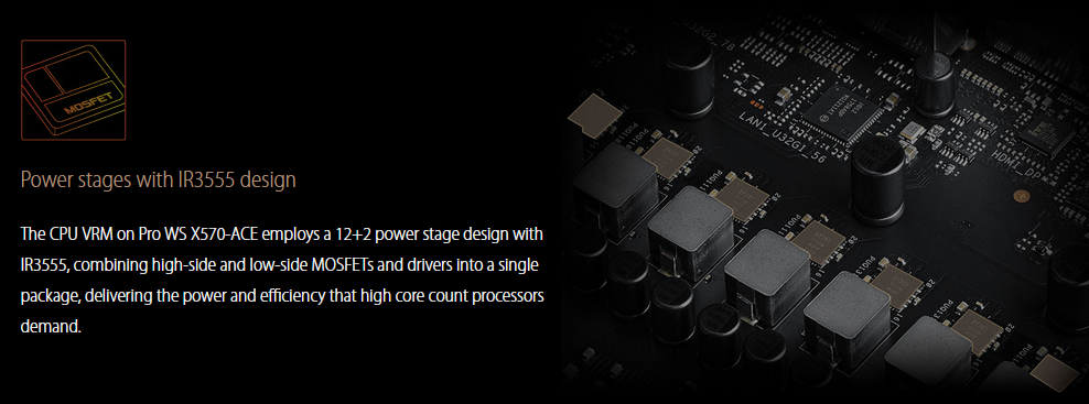 ภาคจ่ายไฟเลือกใช้ Mosfet คุณภาพสูงจากค่าย Power Stage IR3555 แบบ Single Package จำนวน 12+2 Phase สามารถรับมือกับ CPU AMD Ryzen 9 3900X และ 3950X ได้สบายๆ ครับ