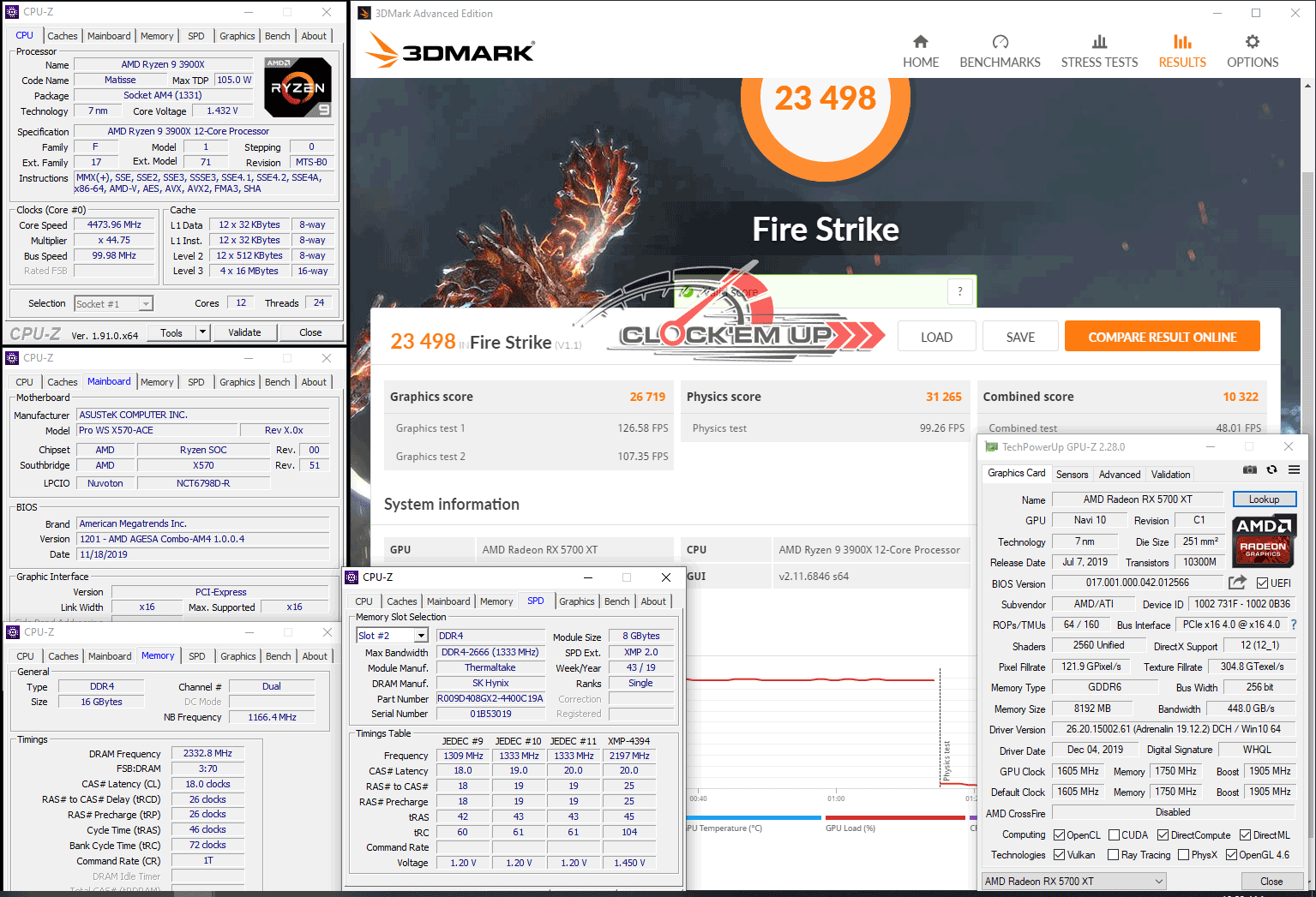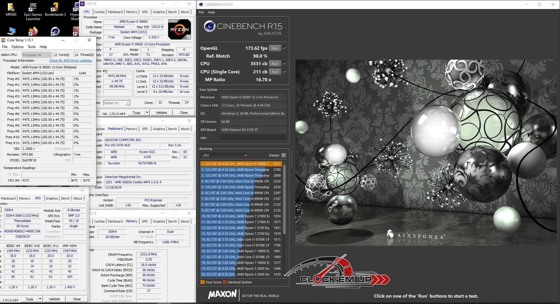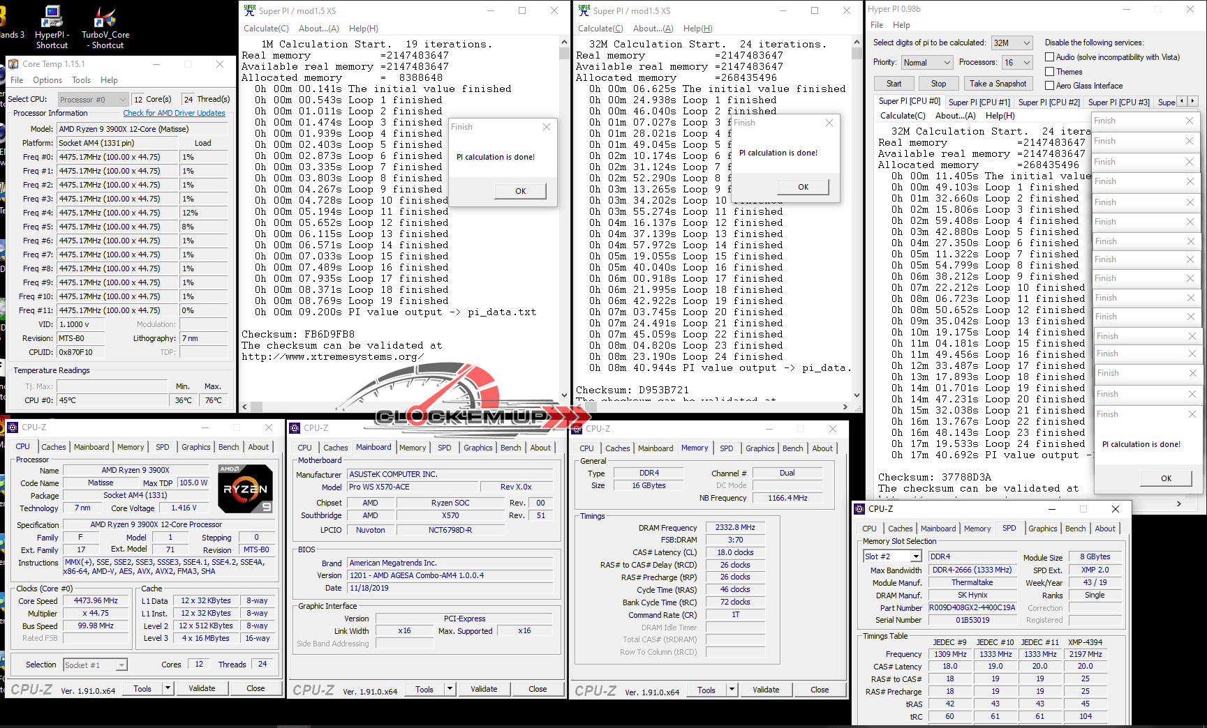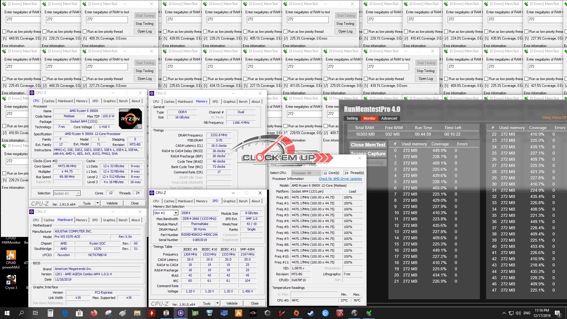 รายละเอียดของชุด System ในการทดสอบครั้งนี้ เราก็จะเน้นไปที่เรื่องของการ Overclock CPU และแรม DDR4 บนเมนบอร์ดรุ่นนี้เลยก็แล้วกัน ซึ่งจากที่ผมลองเล่นดูแล้ว พบว่าภาคจ่ายไฟเมนบอร์ดรุ่นนี้ทำออกมาได้ดีมากๆ โดยสามารถที่จะขับ CPU AMD Ryzen 9 3900X 12C/24T ให้วิ่งเต็มความเร็วทุกคอร์ ที่ทำการ Overclock ไว้ที่ 4.475Ghz All Core ด้วยไฟเลี้ยง 1.4325V ได้อย่างมีเสถียรภาพดีระดับหนึ่งได้เลยนะครับ วึ่งปกติแล้ว CPU ตัวนี้จะทดสอบผ่านได้เกิน 4.45Ghz+ ได้ยากมาก แต่สำหรับเข้า Pro WS X570-ACE ตัวนี้กลับทำได้ดีมากเลยทีเดียว ดั้งนั้นใครเอาไว้ใช้ทำงานสาย WorkStation แบบยาวๆ 24/7 มั่นใจได้ถึงคุณภาพของภาคจ่ายไฟทั้ง 12+2 Phage IR3555 ชุดนี้ได้เลยครับ เพราะการทำงานทั่วไปนั้นไม่ได้มีการ Overclock ที่หนักแบบนี้อยู่แล้ว…. หรือใครอยากจะลองลากดูก็เชิญครับ ^^”