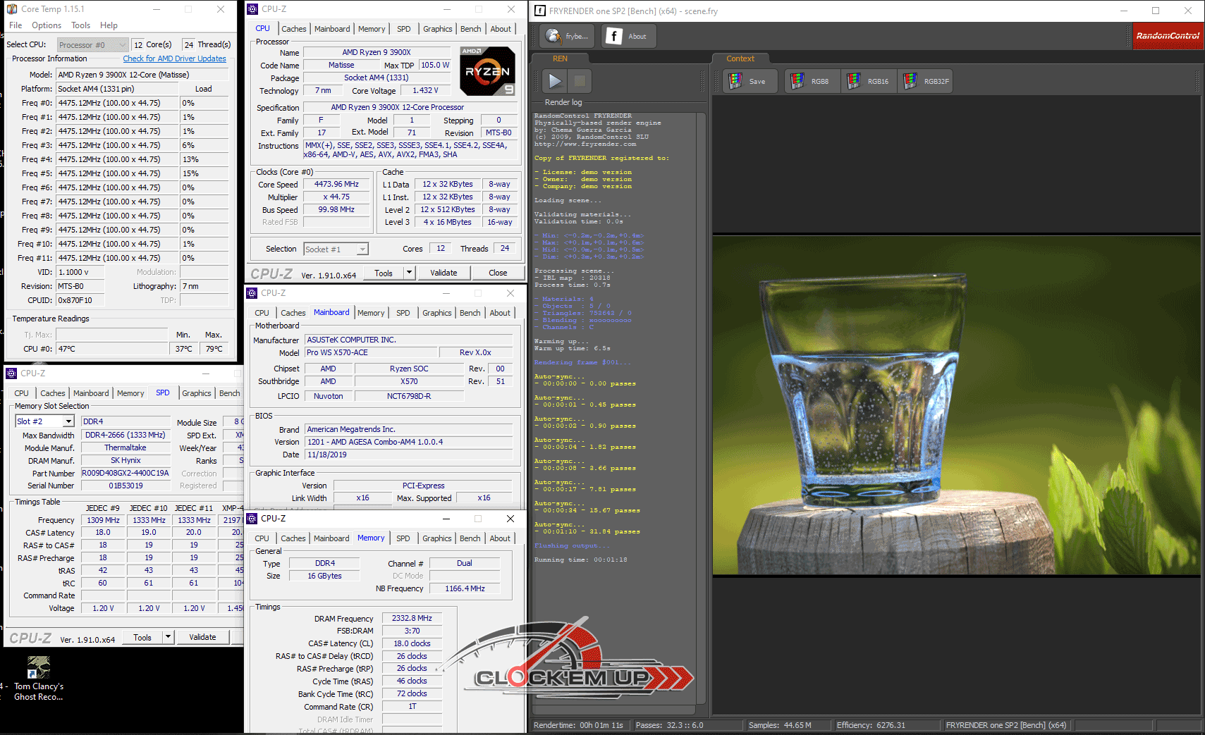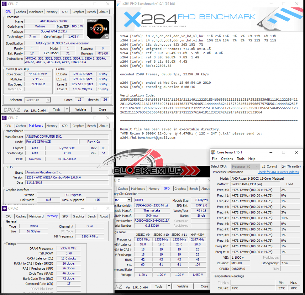 และสำหรับผลการ Overclock ที่เราจะนำมาให้ชมกันในครั้งนี้ก็คือความเร็ว CPU AMD Ryzen 9 3900X@ 4.475Ghz Vcore 1.435V + แรมความเร็ว DDR4-4666Mhz CL18-26-26-46 1T 1.670V (Fclk/Mem 2:1 Mode) ก็พบว่าเมนบอร์ดรุ่นนี้ก็แอบแรงในเรื่องของการลากแรมได้อีกด้วยนะครับ ซึ่งลากกันแบบสุดๆ ก็มีเห็น DDR4-4733 ถึง DDR4-4800Mhz ได้เลยนะเออ…. แปลกดีนะที่เมนบอร์ดสำหรับสายงาน WS จะทำได้ดีขนาดนี้…. และในส่วนของภาคจ่ายไฟนั้นบอกได้เลยว่า Strong มากๆ