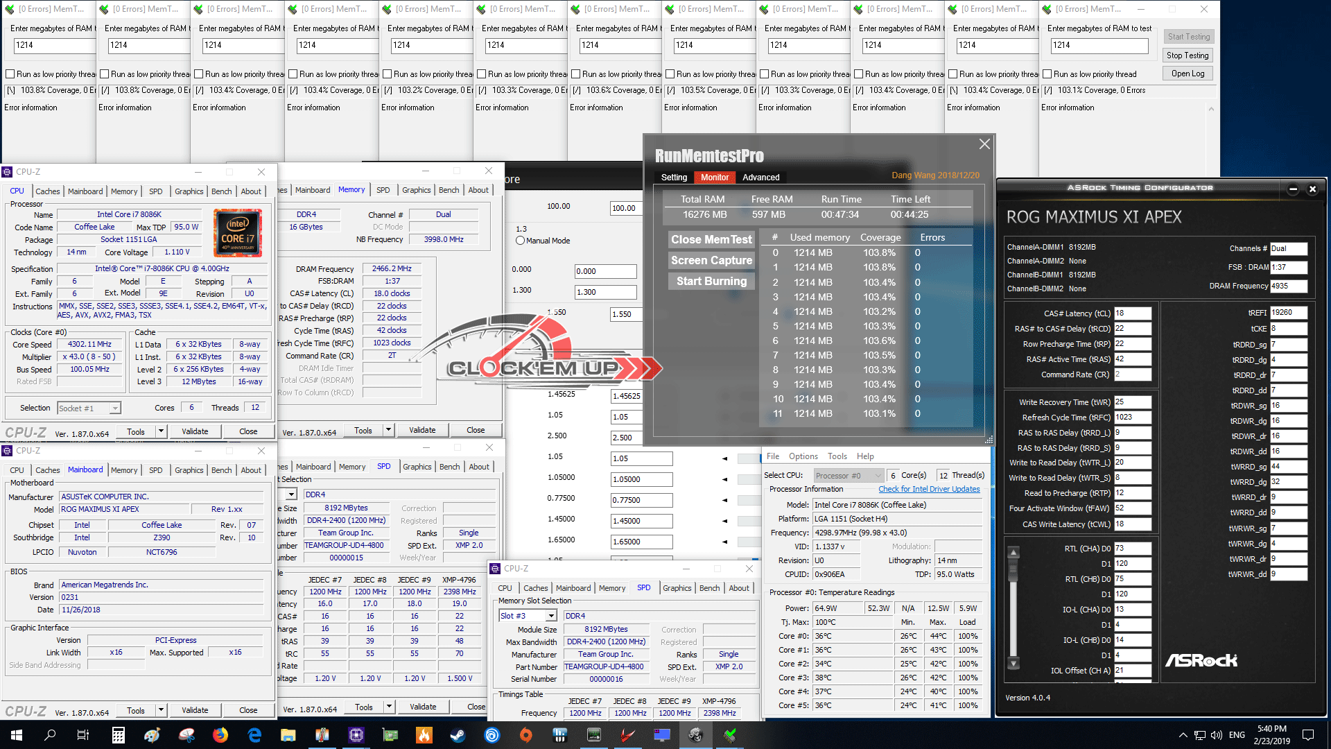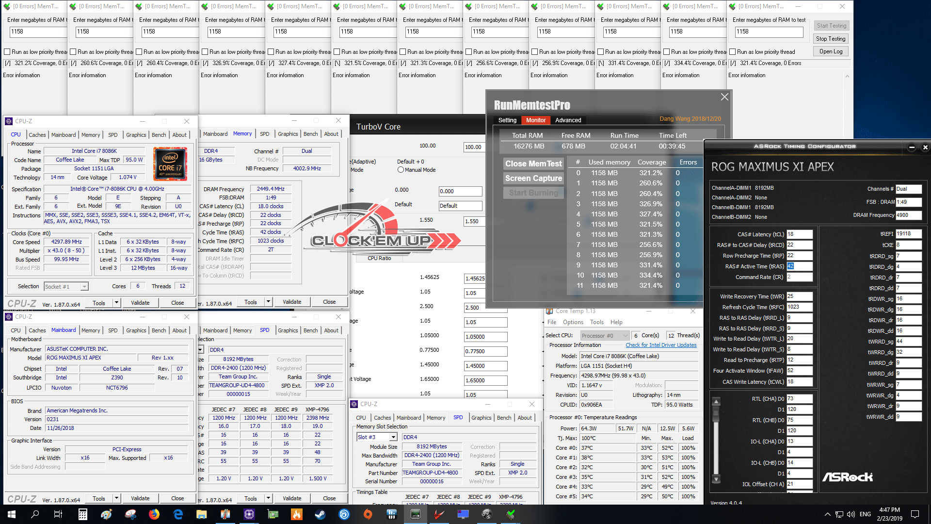 จัดกันไปที่ DDR4-4800Mhz CL18-22-22-42 1.50V ซึ่ง Spec แรมแบบนี้กำลังจะมาแรง จัดไปครับ 1300%+ ใช้เวลาทดสอบ 10 ชั่วโมง ไม่นิ่งก็ให้มันรู้ไป ห้องไม่ได้เปิดแอร์ด้วยนะครับ ^^”
