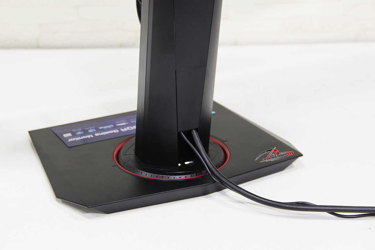ข้อดีอีกอย่างหนึ่งเลยสำหรับการออกแบบขายึดของจอรุ่นนี้คือ ออกแบบให้สามารถซ่อนสายไฟภายในขายึดได้ครับ ทำให้เราจัดเก็บสายไฟให้เป็นระเบียบได้
