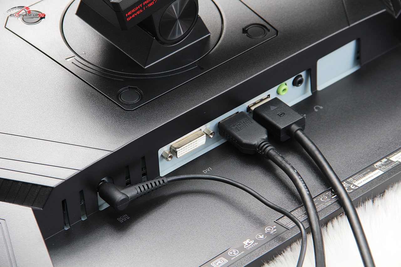 ช่องเสียบที่บริเวณ Panel ด้านหลังประกอบไปด้วยช่องเสียบ Adapter, Dual-Link DVI-D, HDMI 1.4 และ DisplayPort 1.2 นอกจากนนี้ยังมีช่องเสียบเสียบ PC Audio In และต่อออกไปหูฟังแบบ 3.5mm mini-jack ให้อีกด้วยนะครับ…