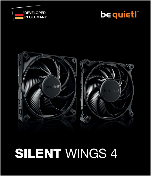 be quiet! ผู้ผลิตอุปกรณ์คอมพิวเตอร์คุณภาพสูงจากประเทศเยอรมนี ขอแนะนำพัดลมระบายความร้อนคอมพิวเตอร์ Silent Wings 4 และ Silent Wings Pro 4 พัดลมคอมพิวเตอร์เจนเนอเรชันที่ 4 ในซีรีย์ Silent Wings เป็นพัดลมรุ่นที่เน้นประสิทธิภาพและความเงียบโดยเฉพาะ ไม่นำเสนอแสงไฟใดๆบนตัวพัดลม Silent Wings 4 ถูกพัฒนาอย่างต่อเนื่องในช่วงหลายปีที่ผ่านมาเพื่อให้เป็นพัดลมที่ดีที่สุดสำหรับพีซีโดยเฉพาะ สามารถระบายความร้อนออกจากฮีทซิงค์ หม้อน้ำ หรืออุปกรณ์คอมพิวเตอร์อื่นๆได้อย่างสมบูรณ์แบบ Silent Wings 4 ได้รับการปรับโฉมใหม่ทั้งหมด ดีไซน์ดุดันในโทนสีดำพร้อมใบพัดอันทรงพลังซึ่งถูกออกแบบขึ้นมาใหม่ แต่ยังคงลวดลายเส้นสายอันเป็นเอกลักษณ์เฉพาะของพัดลม be quiet! ไว้อย่างชัดเจน ซึ่งใบพัดรูปแบบใหม่นี้สามารถสร้างแอร์โฟลว์ (Air Flow) และแรงอัดอากาศ (Air Pressure) ได้อย่างมหาศาล ในขณะที่ยังคงมีระดับเสียงที่ต่ำอย่างน่าประทับใจ