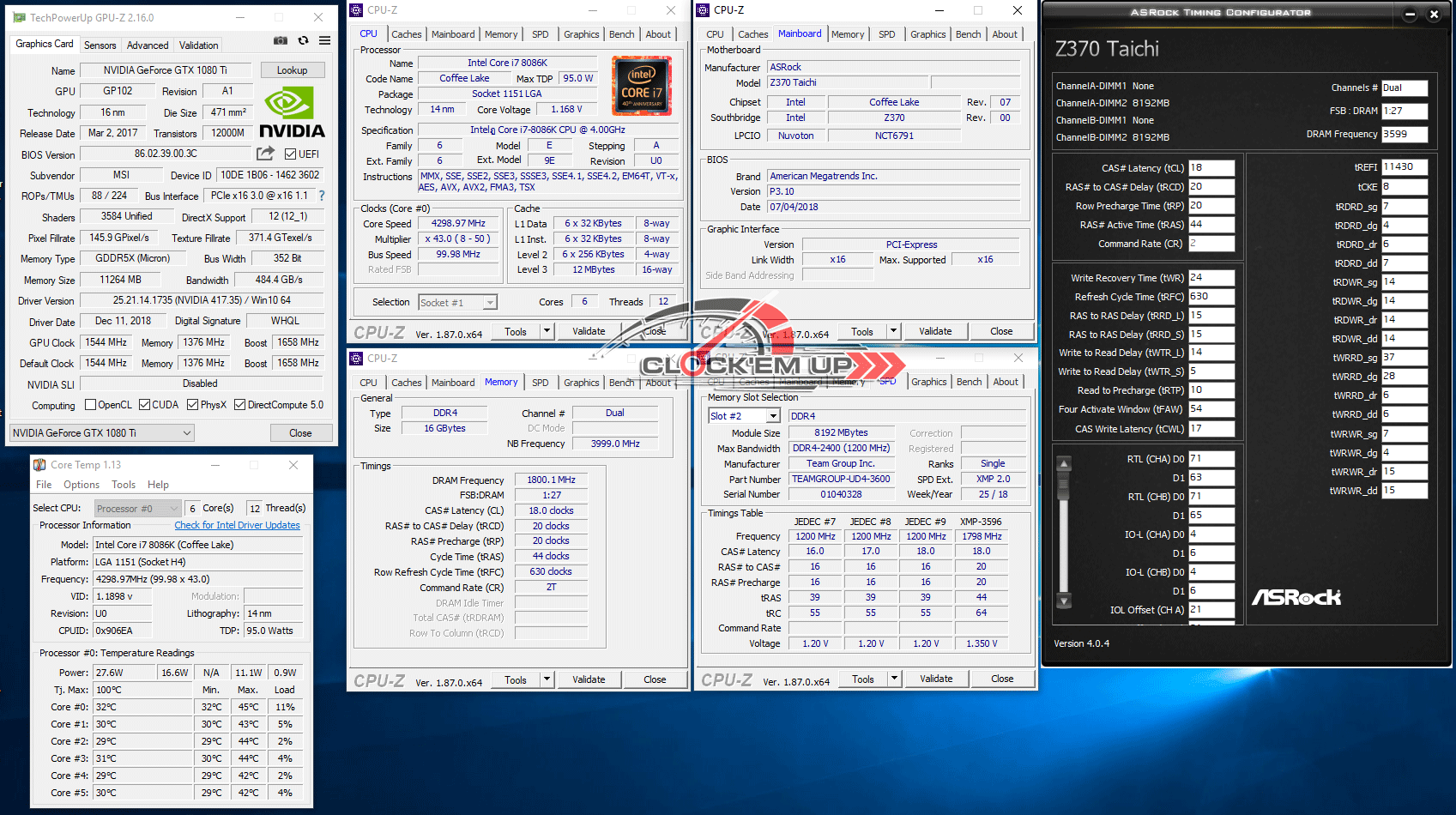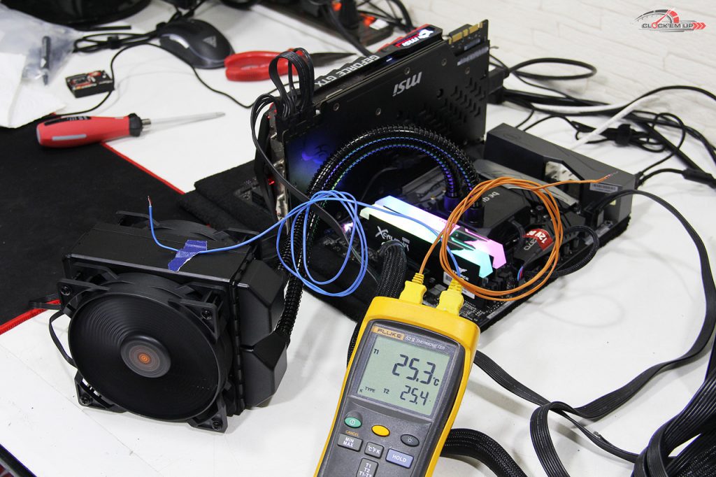 รายละเอียดของ Hardware ที่ใช้งานการทดสอบชุดระบายความร้อนที่ใช้เป็น Base การทดสอบของเรา โดยจะประกอบไปด้วย CPU Intel i7-8086K 6C/12T ทำการผ่ากระดองเปลี่ยนซิลิโคนเป็น Liquid Gallium ด้านในเรียบร้อยแล้ว โดยจะทดสอบความเร็วของ CPU 3 ระดับได้แก่ 4.3Ghz/Cache 4.0Ghz 1.15v, 5.0Ghz/Cache 4.8Ghz 1.30v และ 5.1Ghz/ Cache 4.8Ghz 1.360V ส่วนเมนบอร์ดนั้นใช้ ASROCK Z370 Taichi และแรม DDR4 จากค่าย T-Force Xcalibur RGB DDR4-3600CL18-20-20-44 16GB-Kit ทำงานตามค่า XMP2.0 Profile