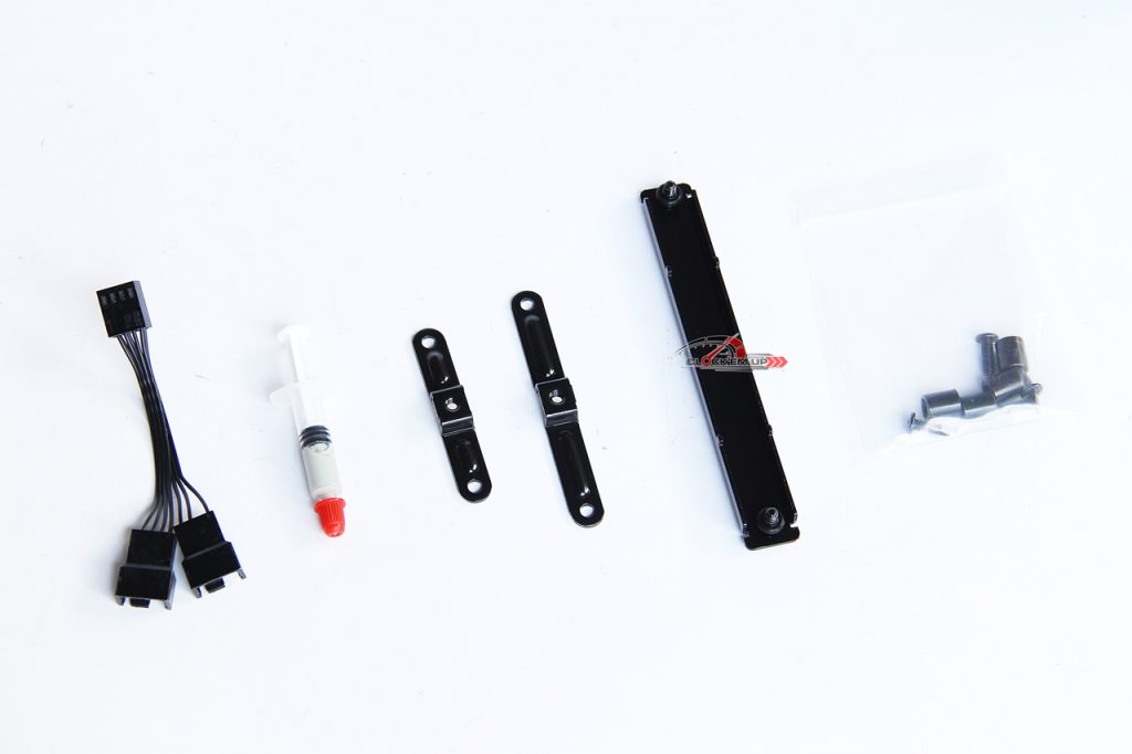 อุปกรณ์ Accessories ต่างๆ ที่แถมมาในกล่องครับ ประกอบไปด้วยชุด Mounting ของ TR4, ซิลิโคนอย่างดี 1 ชุด, สาย Y-Cable ของ 4-Pin PWM แบบ 2 ทางไว้ต่อพัดลมทั้ง 2 ตัวลงเมนบอร์ดให้อีก 1 ชุดครับ