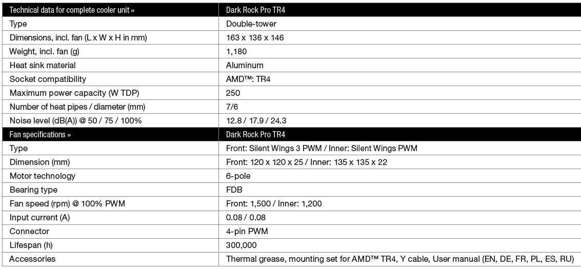 จุดเด่นและการออกแบบโดยรวมแล้ว ยังคงใช้ทรงเดิมของ be quiet! Dark Rock Pro4 ตัวเดิม เพิ่มเติมคือทำฐาน Base ทองแดงใหม่ ให้ใหญ่ขึ้นกว่าเดิม ให้เท่ากับขนาดของกระดอง CPU AMD TR4 Socket นั่นเองครับ และแน่นอนว่ามันก็จะใส่ได้แค่ TR4 เท่านั้น !!! ดังนั้นเรื่องของการออกแบบโดยรวมของ Heatsink รุ่นนี้ผมจะไม่ขอกล่าวอะไรมาก ลองกลับไปดูการออกแบบและเทคโนโลยีที่น่าสนใจในรีวิวของ Dark Rock Pro4 ได้ครับ