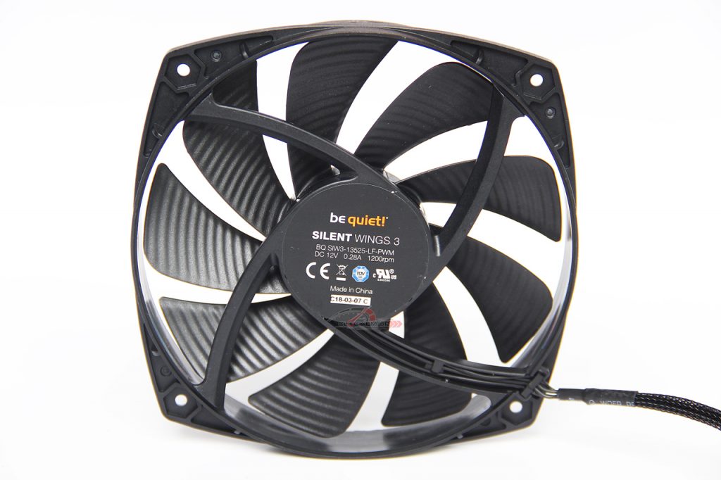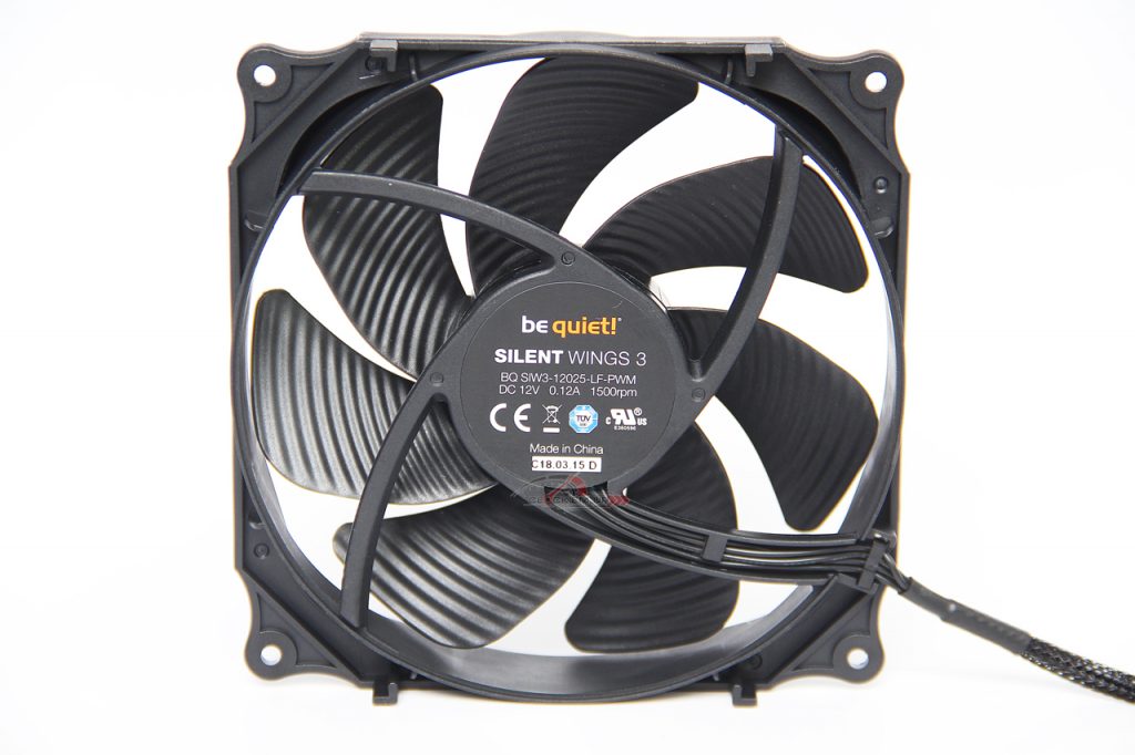 รายละเอียดของในรุ่น Silent Wing 3 ขนาด 120mm. ที่ทำหน้าที่เป็นตัวดูดอากาศเข้าด้านหน้าของ Heatsink นั้นจะทำงานที่รอบสูงสุด 1500rpm. ซึ่งจะมาพร้อมกับใบพัดทั้งหมด 7 ใบ พร้อมขั่วต่อแบบ +12V 4Pin PWM