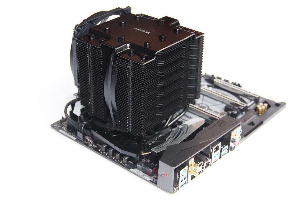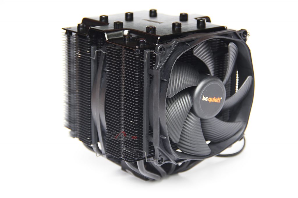 สำหรับรายละเอียดของการออกแบบ Heatsink ระบายความร้อนของ CPU ตัวนี้ก็จะเป็นทรงแนวตั้งแบบ Dual Tower ที่มีท่อ Heatpipe ขนาด 6mm. จำนวน 7 ท่อในการนำความร้อน มาพร้อมกับพัดลมระบายความร้อนในรุ่น Silent Wings แบบ PWM ที่เน้นการทำงานที่เงียบเป็นพิเศษเพียง 24.3dBA เท่านั้น และยังออกแบบเผื่อให้สามารถติดตั้งพัดลมเสริมได้อีก 1 ตัวบริเวณด้านหลังของ Heatsink รวมแล้วเท่ากับว่า เราสามารถติดตั้งพัดลมเข้าไปบนตัว Heatsink ได้สูงสุด 3 ตัวกันเลยทีเดียว….