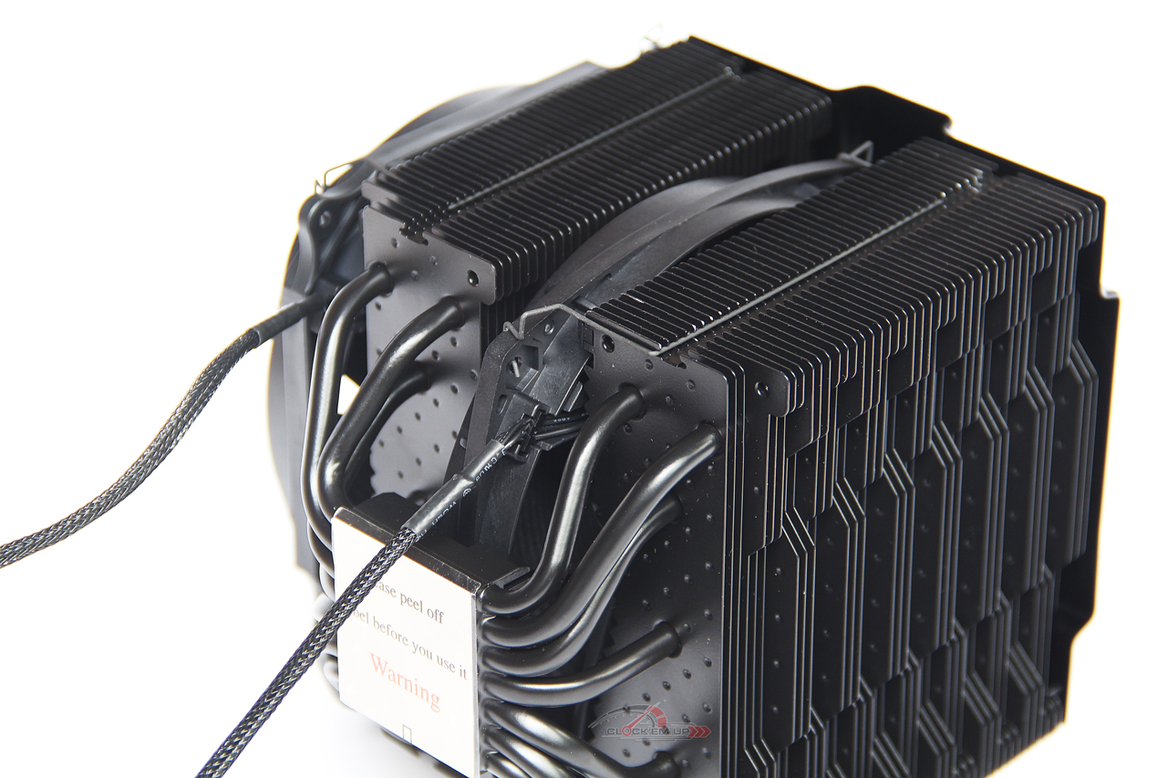 การออกแบบของ Heatsink ตัวนี้ก็อย่างที่บอกเลยครับว่าเป็นทรง 2 Tower หรือการแบ่งครีบระบายความร้อนออกเป็น 2 ชุดที่เชื่อมกันด้วยท่อ Heatpipe ขนาด 6mm. จำนวนถึง 7 ท่อด้วยกัน