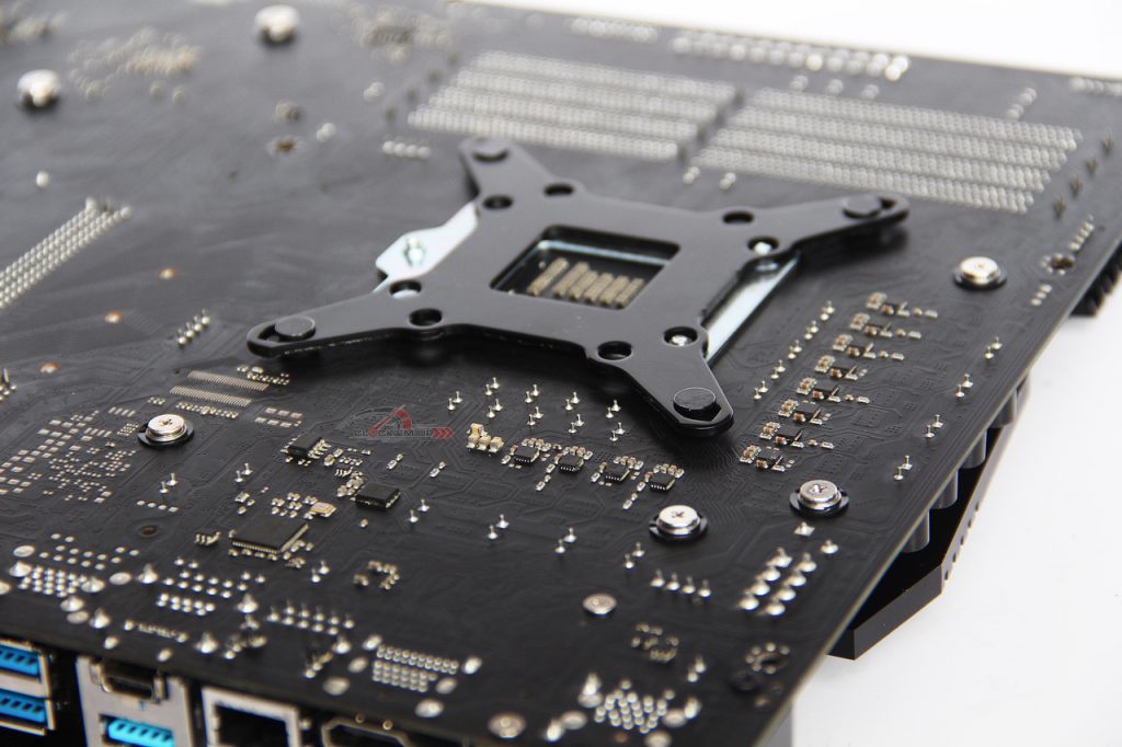 ฐานบริเวณด้านหลังก็จะมาพร้อมกับสลักที่สามารถขยับได้ และมียาง O-Ring ใส่ไว้ก่อนที่จะเสียบลงเมนบอร์ด เพื่อป้องกันการขีดข่วนเข้ากับตัวเมนบอร์ดให้เป็นที่เรียบร้อย