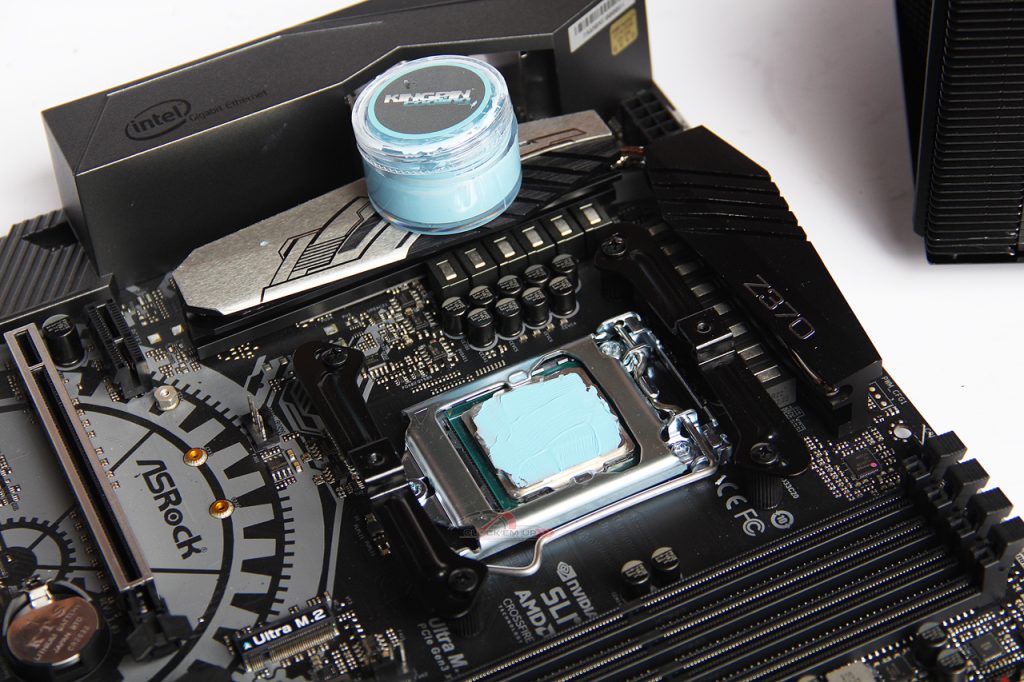 ซิลิโคนนำความร้อนที่เราเลือกใช้ครั้งนี้คือ Kingpin Cooling รุ่น KPx เนื้อสีฟ้าไม่ซ้ำแบบใคร ที่สำคัญมันเย็นจริงๆ ใช้ได้ทั้งแบบติดลบกับ LN2 หรือจะใช้งานกับ Air-Cooling ก็สามารถใช้ได้ดีด้วยเช่นกัน