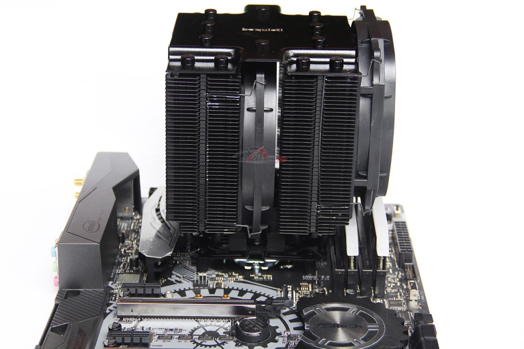 บอกได้เลยว่าเจ้า be quiet! DARK ROCK PRO 4 นั้นมีความแอบบหล่ออย่างมากเลยทีเดียว และด้วยที่ตัว Heatsink เป็นสีดำทั้งตัว จึงทำให้มันสามารถเข้ากับเมนบอร์ดได้แทบทุกเฉดสีกันเลยทีเดียว จัดว่าฉลาดเลือกใช้สีพื้นจริงๆ ครับ ^^”