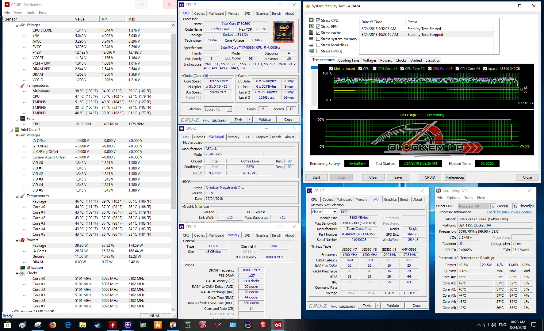 5.1Ghz/Cache 4.8Ghz Vcore 1.36v Ambient Room 29-30c