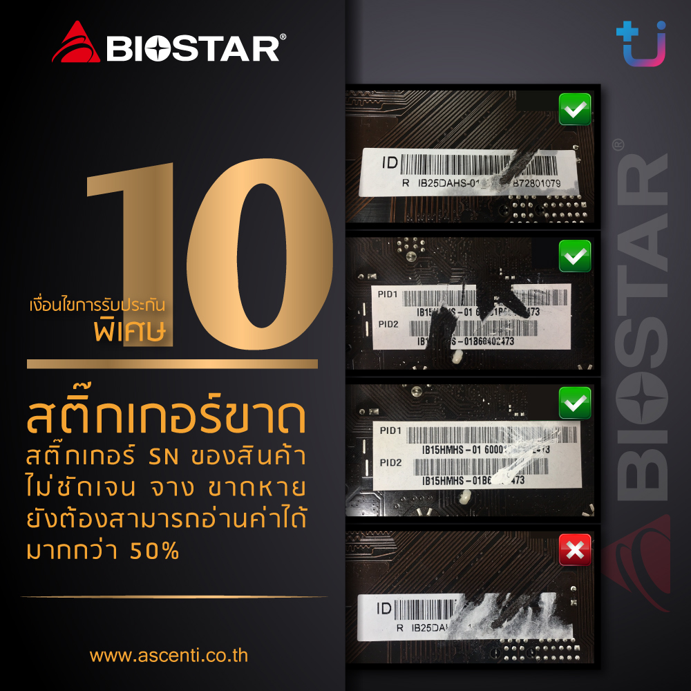 การรับประกันสินค้า BIOSTAR ภายใต้การนำเข้าของ Ascenti Resoources และเงื่อนไขการรับประกันสินค้าที่เหนือกว่า