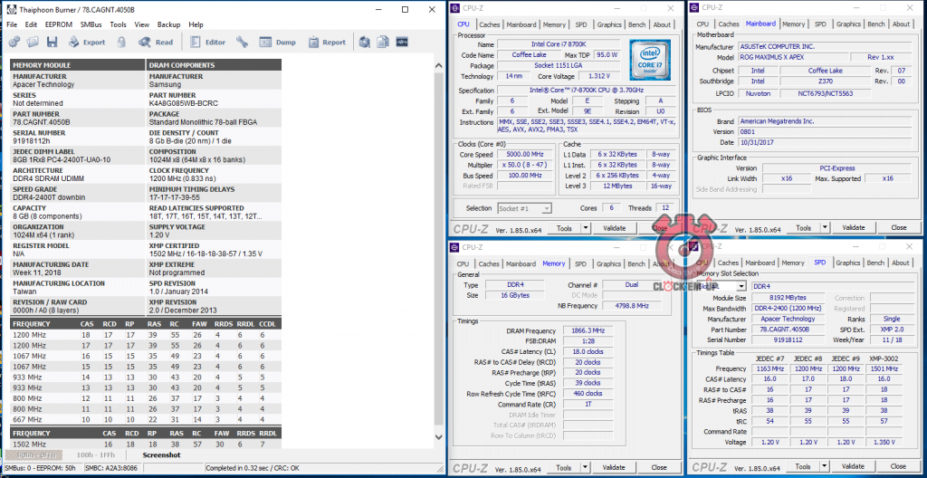 มาดูรายละเอียดของเม็ดแรมกันสักนิดจากโปรแกรม Thaiphoon Burner v1.40 ก็ระบุชัดเจนว่าเป็นแรมจากค่าย Samsung ในรหัส B-Die 20nm.