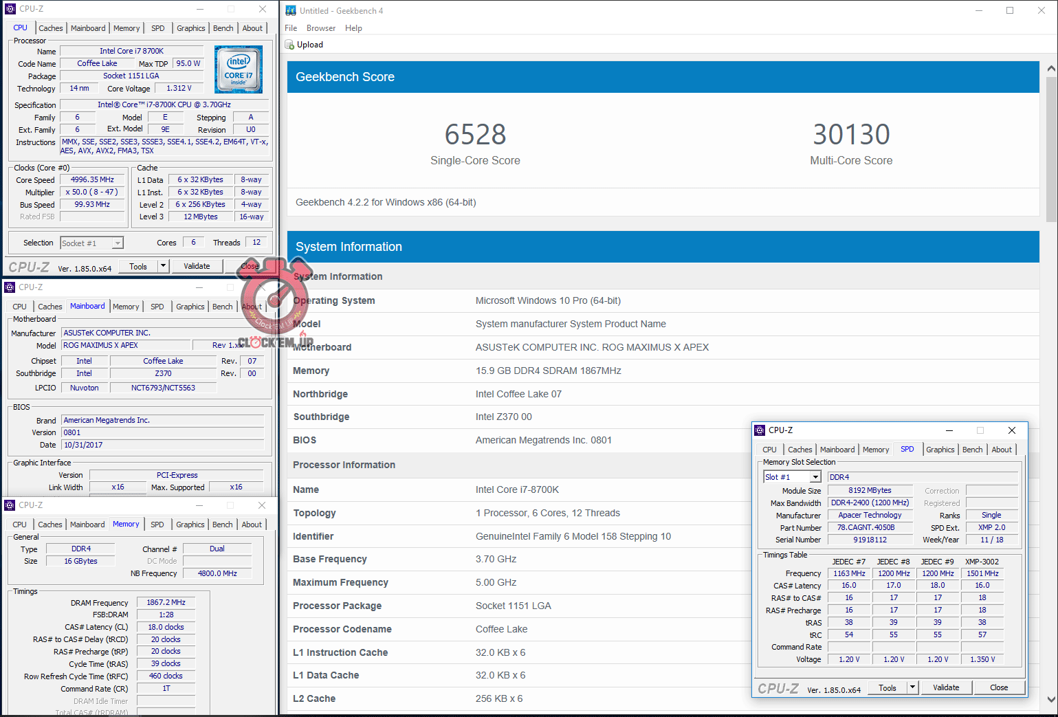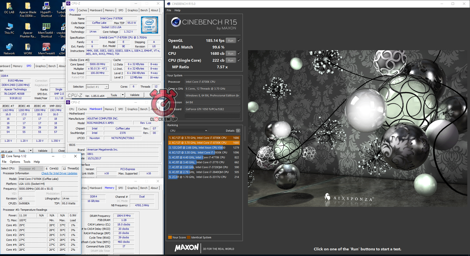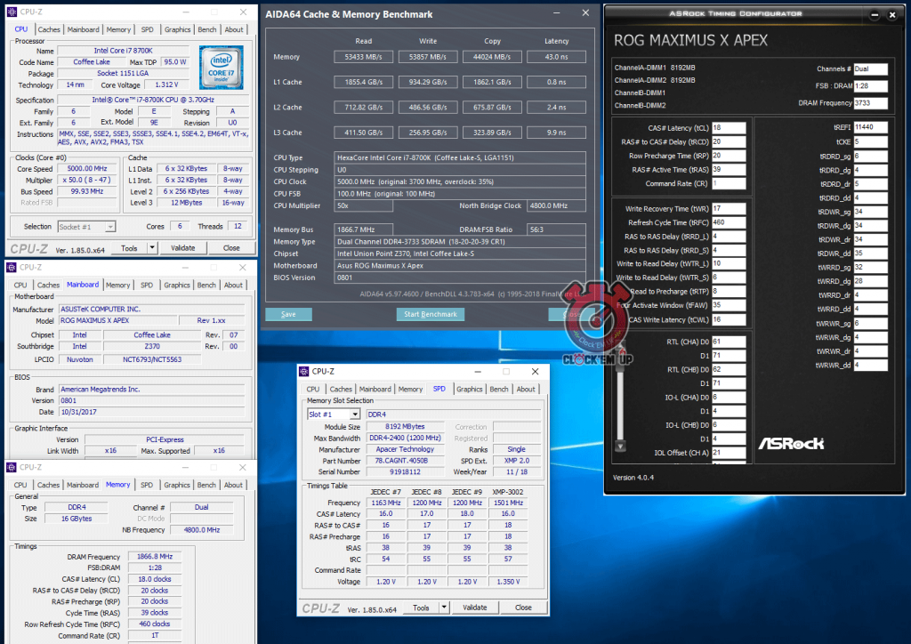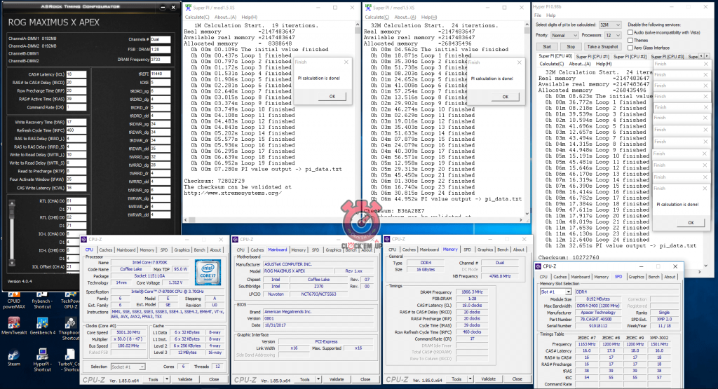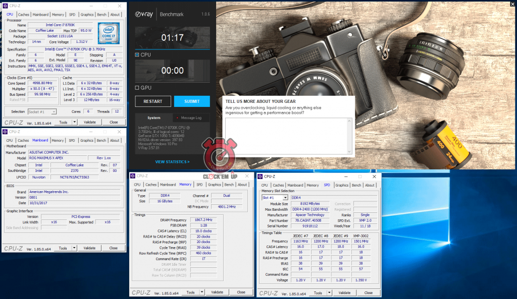 รายละเอียดของการทดสอบครั้งนี้ เราก็จะทำการ Overclock ร่วมกับ CPU Intel Core i7-8700K ไปที่ความเร็ว 5.0Ghz/Cache 4.8Ghz ใช้ไฟเลี้ยง Vcore ที่ระดับ 1.30V ส่วนแรมนั้น Overclock จากความเร็วเดิมๆ ที่ DDR4-3000Mhz CL16-18-18-38 ขึ้นไปได้ถึงความเร็วระดับ DDR4-3733Mhz CL16-18-18-39 2T + Tight Sub-Timing ด้วยไฟเลี้ยงต่ำเพียงระดับ 1.35V เท่านั้นเอง จัดว่าเป็นแรมอีกรุ่นหนึ่งที่มีความสามารถในการ Overclock ที่ดีและกินไฟต่ำ แต่ก็มีจุด Limit อยู่ด้วยเช่นกันครับ คือเกินกว่าความเร็วระดับ 3733Mhz ขึ้นไปนั้นก็จะพอบูทขึ้นมาได้บ้าง แต่ก็ไม่สามารถไปถึงระดับ 4000Mhz+ ได้ครับ ^^”