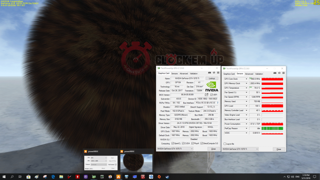 ก่อนอื่นก็มาชมผลการทดสอบทางด้านอุณหภูมิและอัตราการใช้พลังงานของตัวการ์ด ASUS CERBERUS GTX1070 Ti ADVANCE 8GB ตัวนี้ดูกันก่อนเลยครับ โดยเราจะทดสอบในห้องแอร์อุณหภูมิอยู่ในช่วง 24-25c องศาเซลเซียสตลอดการทดสอบ