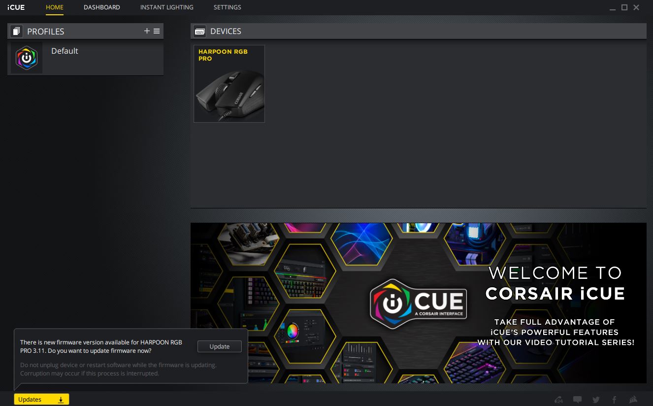 ซอฟแวร์ที่ใช้ครบคุมเจ้า Harpoon RGB Pro ก็คือ iCUE โดยสามารถเข้าไปโหลดได้ในเว็ปของทาง Corsair โดยตรงได้เลยโดยในซอฟแวร์นั้นสามารถกำหนดแสงสีและการควบคุมต่างๆได้มากมาย