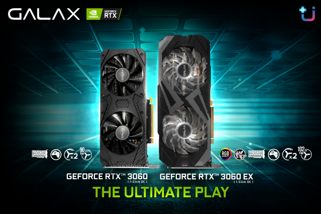GALAX เปิดตัวการ์ดจอสำหรับการเล่นเกมรุ่นใหม่ล่าสุด GALAX GeForce RTX™ 3060 EX (1-Click OC) และ GALAX GeForce RTX™ 3060 (1-Click OC) มาพร้อมพร้อมขุมพลังขับเคลื่อน NVIDIA AMPERE ซึ่งเป็นสถาปัตยกรรม RTX ในเจเนอเรชั่นที่ 2 ของ NVIDIA ประสิทธิภาพสุดน่าทึ่งด้วย Ray Tracing Cores และ Tensor Cores ที่ได้รับการปรับปรุงให้ดียิ่งขึ้น มีมัลติโปรเซสเซอร์สำหรับการสตรีมรูปแบบใหม่ และหน่วยความจำความเร็วสูงอย่าง GDDR6 ด้วยการใช้พลังงานที่ต่ำบวกกับประสิทธิภาพที่สูงทำให้เป็นรุ่นที่น่าสนใจอย่างมาก