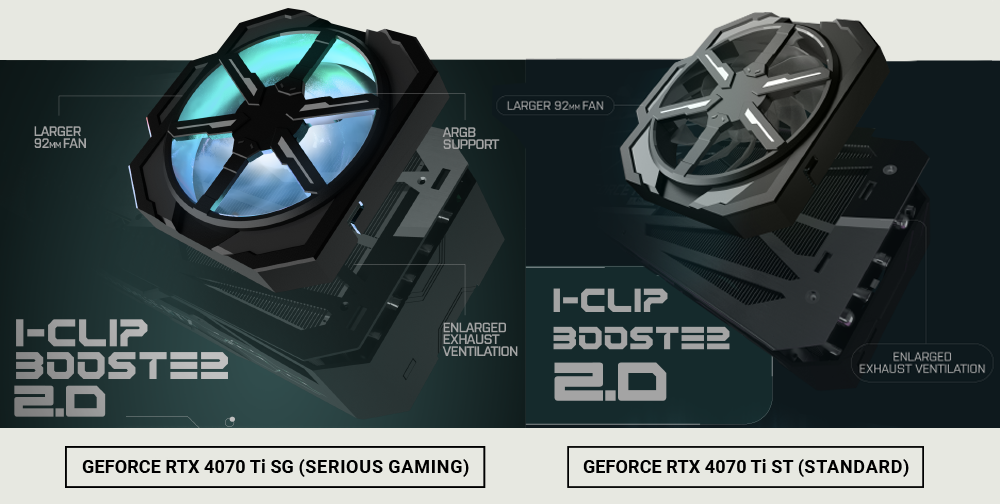 GEFORCE RTX 4070 Ti SG : 1-Clip Booster 2.0 ขนาด 92mm มาพร้อมกับไฟ ARGB (สามารถถอดเข้า-ออกได้)