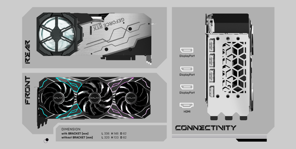 Display Support : HDMI 2.1a x 1, DisplayPort 1.4a x 3 มีท่อนำความร้อนและ Heat Pipe ขนาด 6x8mm มีเคลือบสารนิกเกิลป้องกันการเกิดสนิม