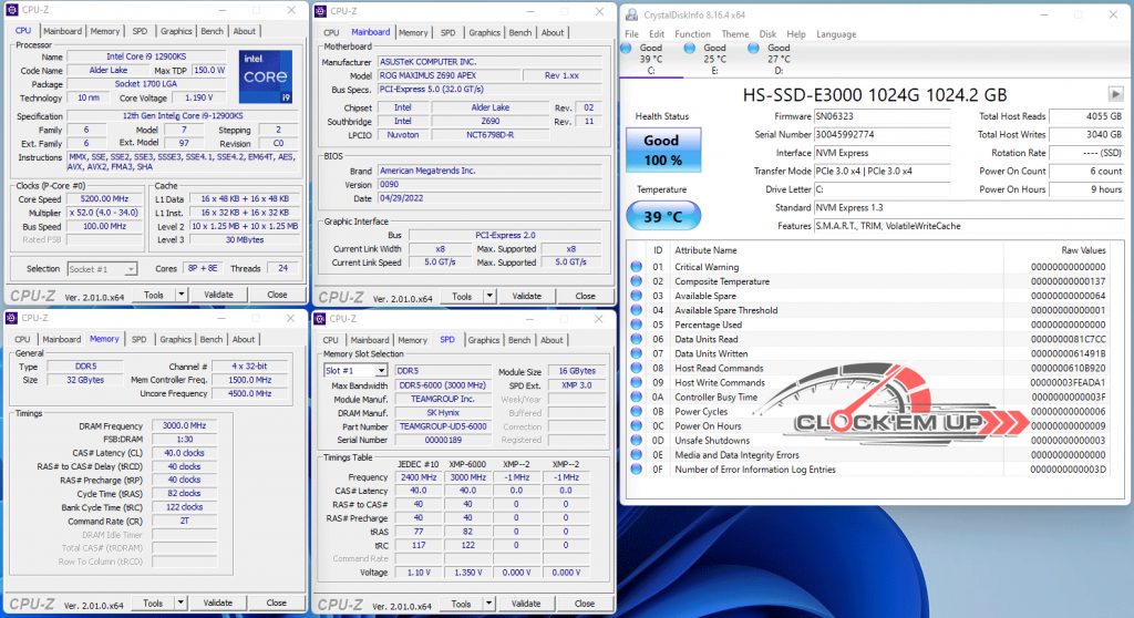 รายละเอียดของชุด Hardware ในการทดสอบครั้งนี้ เราจะต่อใช้งานเจ้า HIKVISION E3000 1TB ตัวนี้เข้ากับ PC รุ่นล่าสุดอย่าง CPU intel Core i9-12900KS + บอร์ด ROG MAXIMUS Z690 APEX โดยเราจะทำการติดตั้งตัว M.2 ตัวนี้ลงในช่องเสียบ พร้อมกับชุด Heatsink M.2 ในการระบายความร้อนให้กับตัว 3D-TLC NAND ที่มาพร้อมกับตัวเมนบอร์ดครับ การทดสอบจะอยู่ในห้องแอร์ 25-27c ตลอดการทดสอบ (Open Case)
