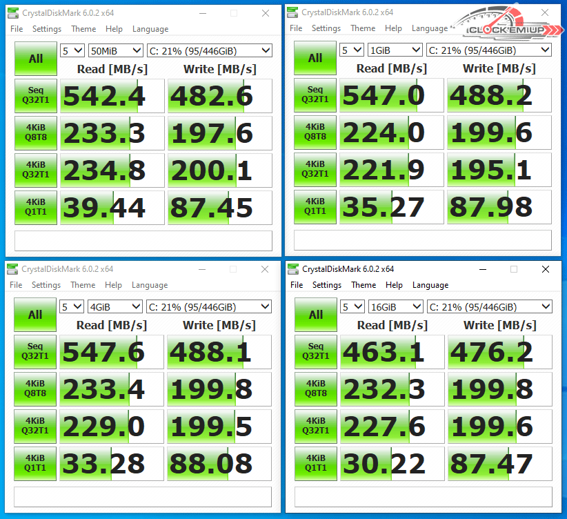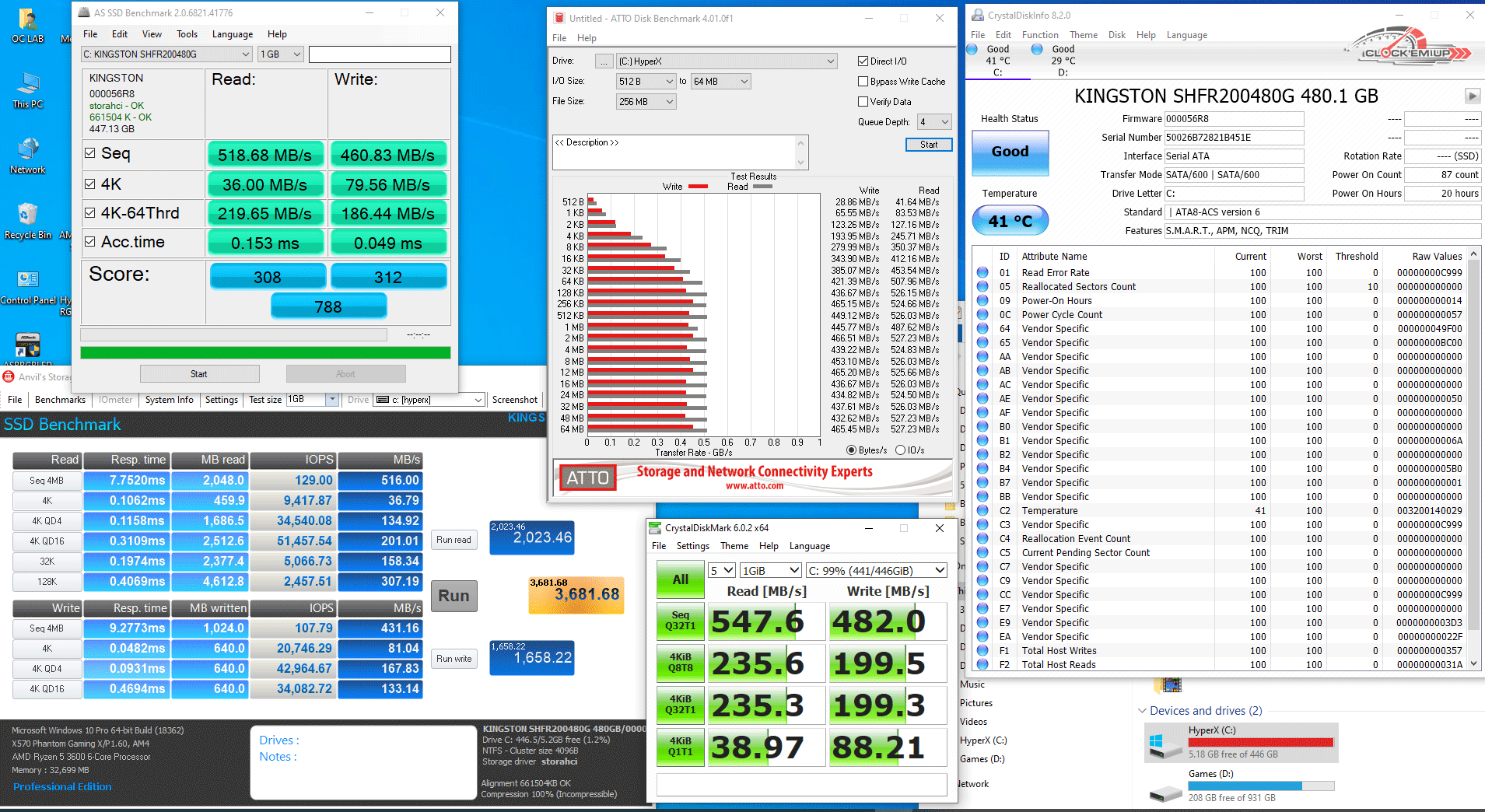 เอาล่ะครับมาถึงช่วงของการทดสอบวัดประสิทธิภาพจากทาง Benchmark ชั้นนำต่างๆ ดูกันเลยครับว่าจะมีผลการทดสอบที่น่าสนใจสักแค่ไหน และจากการทดสอบของเราในรีวิวฉบับนี้ก็ทำให้เห็นว่าตัว SSD รุ่น HYPER X FURY RGB 480GB ตัวนี้ก็ให้ผลการทดสอบเรื่องของ Seq Read/Write ได้ใกล้เคียงกับประสิทธิภาพที่แจ้งไว้ประมาณ 550/480MB/s และมีค่าการทดสอบ 4K Read ได้ในช่วงประมาณ 34-39MB/s ของแต่ละ Benchmark ต่างๆ ก็ถือว่าจัดอยู่ในระดับกลางๆ ไม่ถึงกับแรงเวอร์ แต่ก็ถือว่าจัดอยู่ในมาตราฐานที่รับได้ และผลการทดสอบแบบ Disk เกือบเต็ม 99% ก็ยังสามารถทำงานได้ด้วยที่ความเร็วในการทดสอบไม่ได้ตกไปแจ่อย่างใด ถือว่าสอบผ่านครับรุ่นนี้….