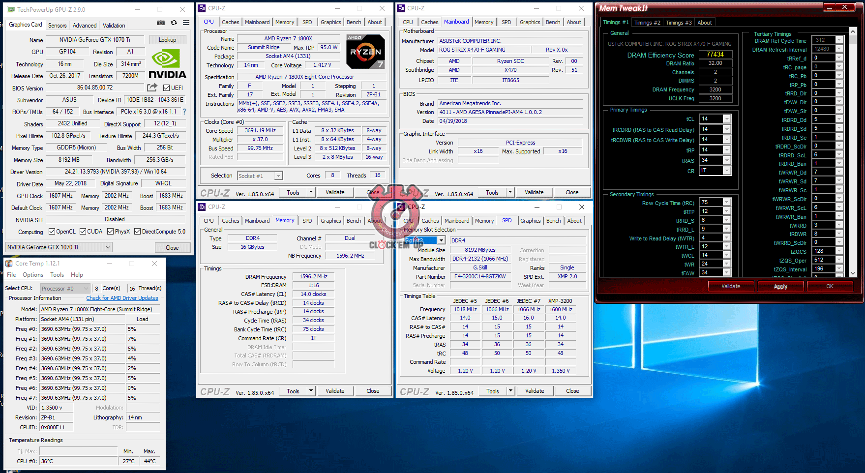 รายละเอียดของชุดทดสอบ AMD RYZEN 7 1800X ที่ทำงานร่วมกับเมนบอร์ด ASUS ROG STRIX X470-F GAMING โดยชุดทดสอบทั้งหมดจะปรับแต่งความเร็วของแรมที่ DDR4-3200CL14-14-14-34 1T เท่ากันทุกชุดครับ