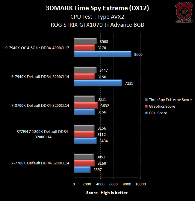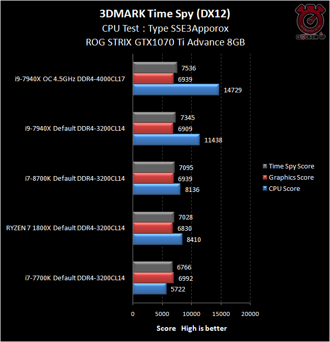 ส่วนทางด้าน 3DMARK Time Spy และ Time Spy Extreme นั้นเจ้า CPU รุ่นใหญ่อย่าง Intel Core i9-7940X 14C/28T ตัวนี้ก็ยังคงทำหน้าที่ได้ดีกว่า CPU รุ่นอื่นๆ แบบชัดเจน เพราะอ้างอิงจากคะแนน Multi-Thread ในช่วง CPU Test ค่อนข้างเยอะด้วย ดังนั้นเจ้า i9-7940X จึงปั่นคะแนนออกมาได้ดีที่สุดครับ เยี่ยมไปเลย….