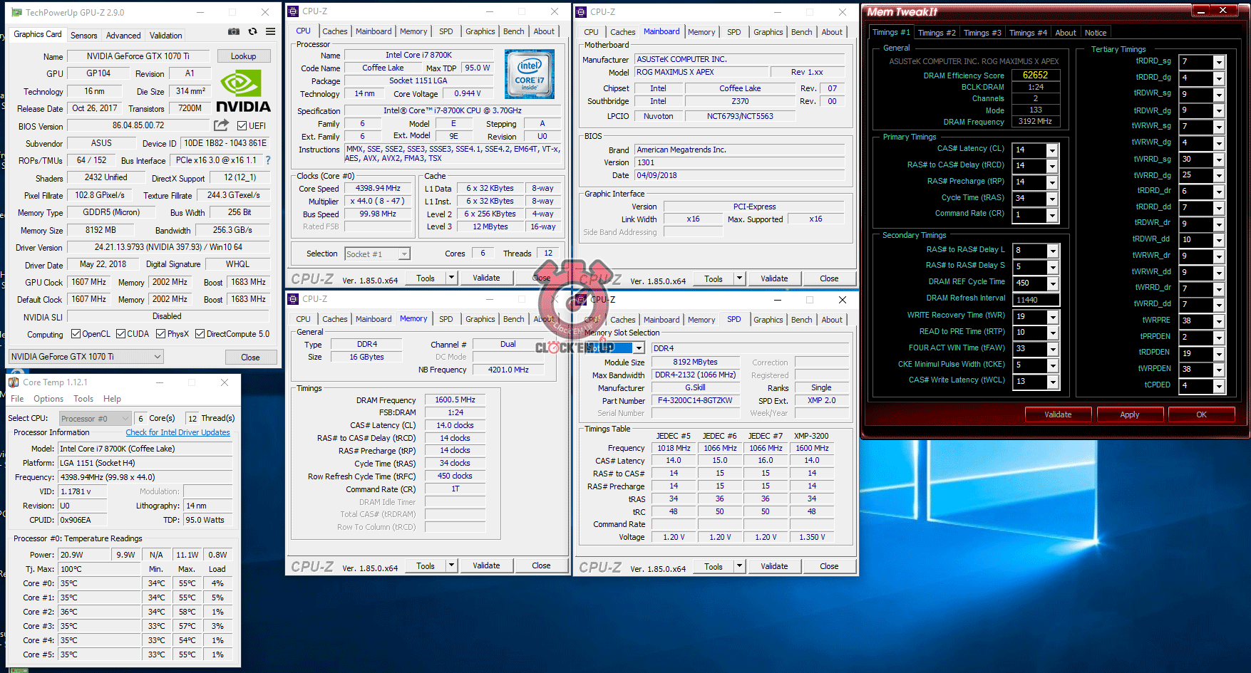 รายละเอียดของชุดทดสอบด้วย CPU Intel Core i7-8700K 6C/12T [Coffeelake 14nm.] ร่วมกับเมนบอร์ด ASUS ROG MAXIMUS X APEX