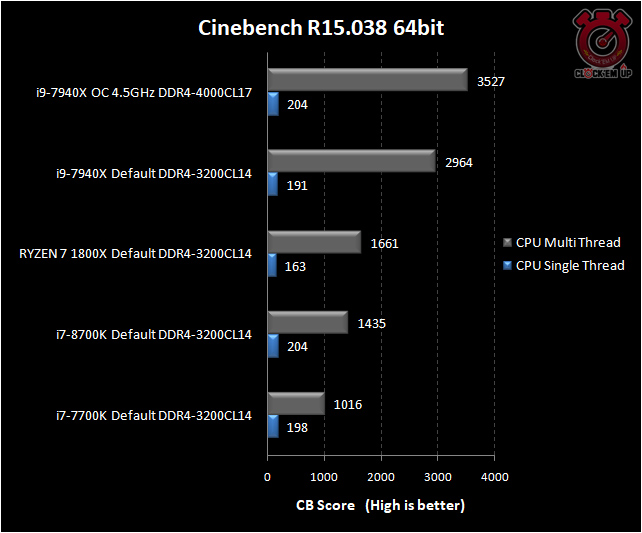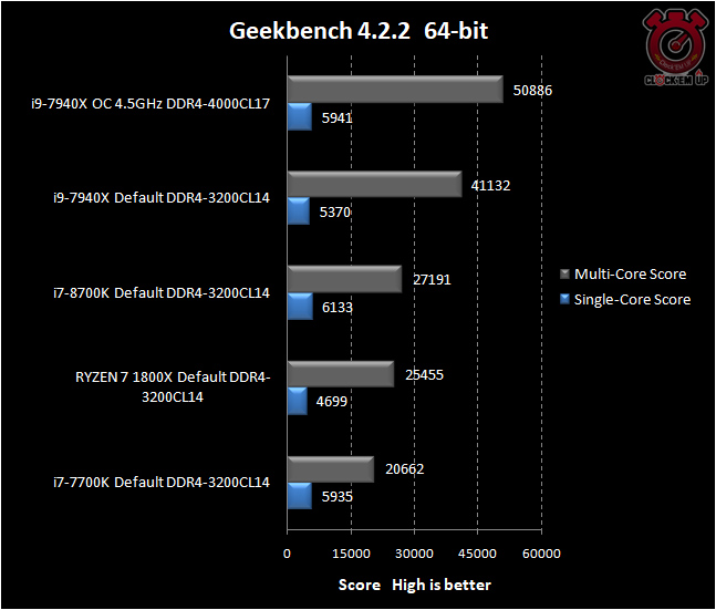 ส่วนผลการทดสอบแบบ Overclock ที่เราได้เพิ่มลงไปในส่วนของ Compare นั้นก็จะทำการ Overclock CPU Intel Core i9-7940X ตัวนี้ขึ้นไปที่ความเร็ว 4.5Ghz/Cache 3.0Ghz + DDR4-4000CL17-18-18-41 1T เทียบให้ชมถึงประสิทธิภาพจากการ Overclock กันด้วยครับ