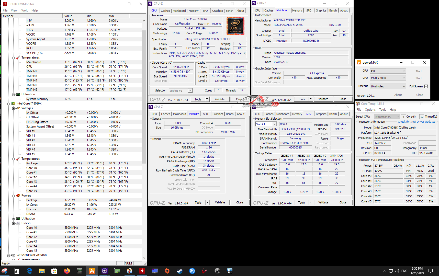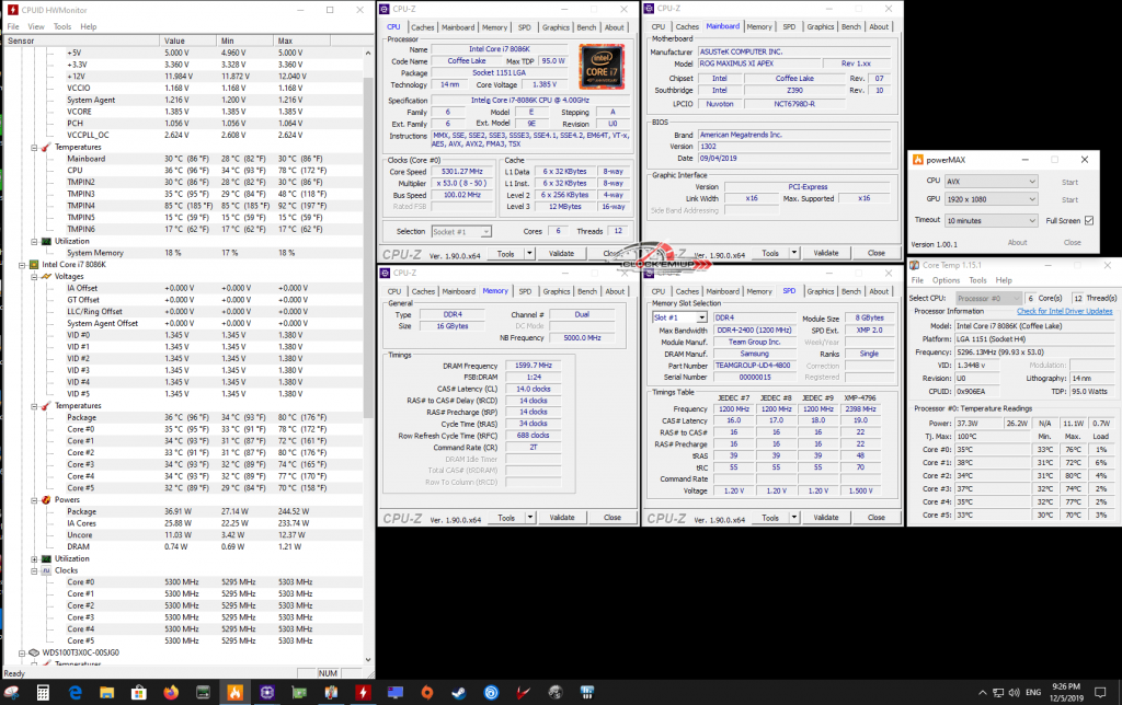 - i7-8086K @ 5.3Ghz/Cache 5.0Ghz 1.385V