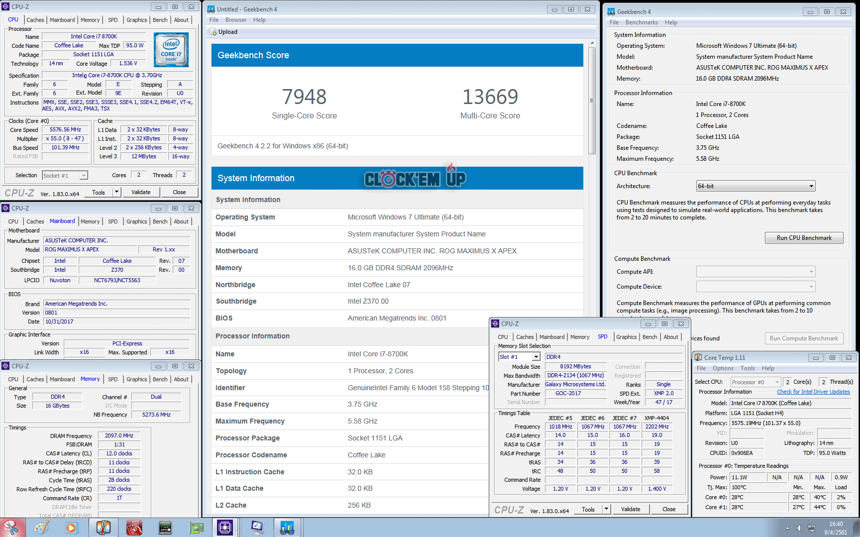 ส่วนผลการทดสอบทิ้งท้ายบทความรีวิว KPx ในครั้งนี้เราก็จะบี้กันสุดๆ ด้วยการ Overclock CPU Intel Core i7-8700K ที่ได้รับการผ่ากระดองแล้วในครั้งนี้ว่าจะสามารถไปสุดๆ ได้เท่าไรบนชุดระบายความร้อนด้วยน้ำแบบ AIO TT Floe Riing 360 RGB และลดแอร์ลงเย็นๆ ในระดับ 21-23c พบว่า CPU ตัวนี้สามารถทดสอบ Geekbench 4 ที่เน้นหัวข้อ Single Core Score ได้สูงสุดที่ความเร็ว 5.57Ghz/Cache 5.27Ghz Vcore 1.536V [2C/2T] ผ่านได้แบบหน้าเหลือเชื่อครับ นี่แค่ AIO เท่านั้นนะ… ไว้มีโอกาสต้องลงแบบติดลบหนักๆ บ้างเสียแล้ว ฮ่าๆ…