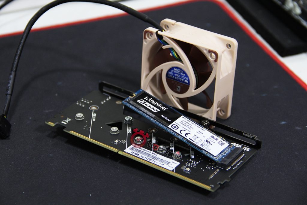 ส่วนการติดตั้งนั้นเราก็จะทำงานใส่เจ้า M.2 ตัวนี้ลงบน ROG DIMM.2 ของทาง ASUS ร่วมกับเมนบอร์ดในรุ่น ROG RAMPAGE VI APEX (X299)