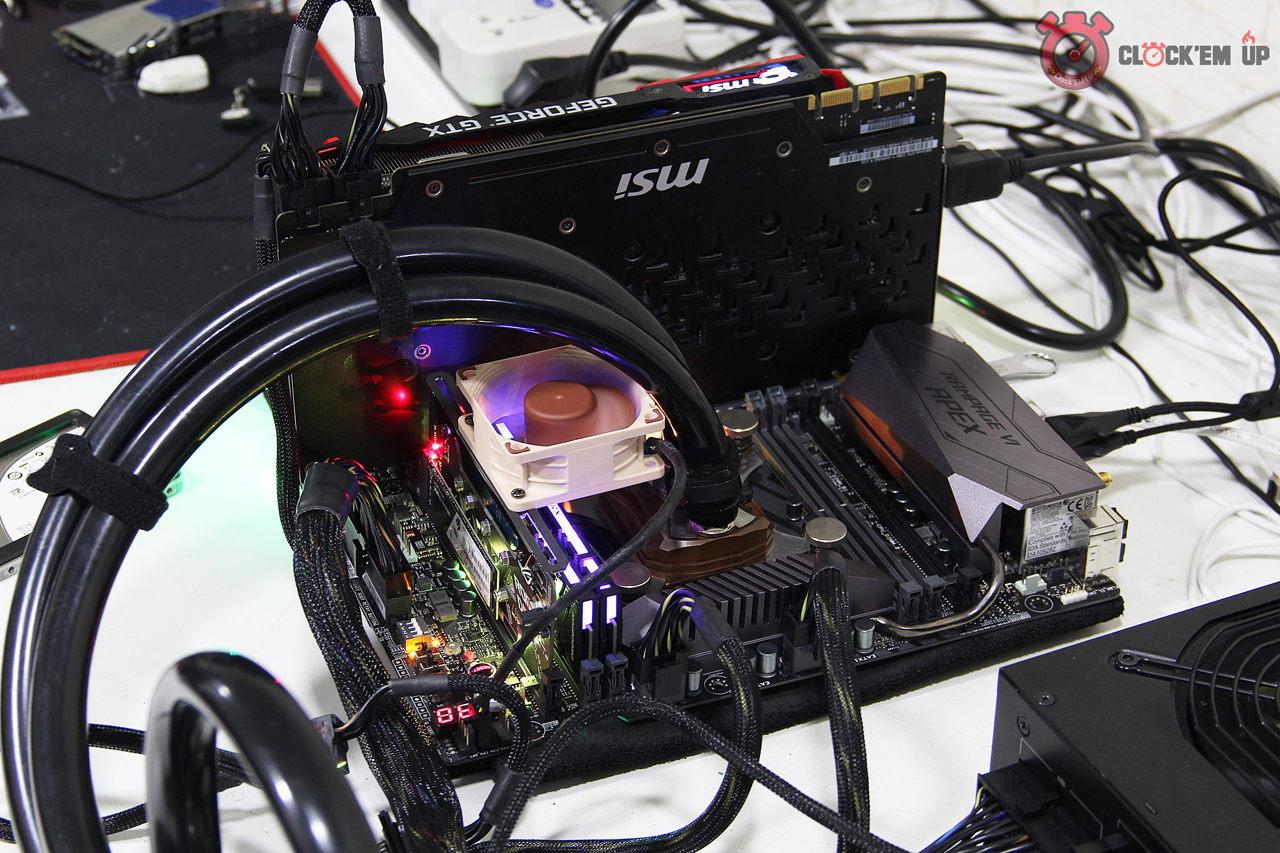 ภาพบรรยากาศในการทดสอบครั้งนี้ครับ โดยชุด System ที่เราใช้ในการทดสอบครั้งนี้ประกอบไปด้วย CPU Intel Core i5-7640X 4C/4T (Kabylake-X 14nm. LGA-2066) + ROG RAMPAGE VI APEX ( Intel X299) และแรม DDR4 จากค่าย HyperX DDR4-2933CL15 16GB (8GBx2)