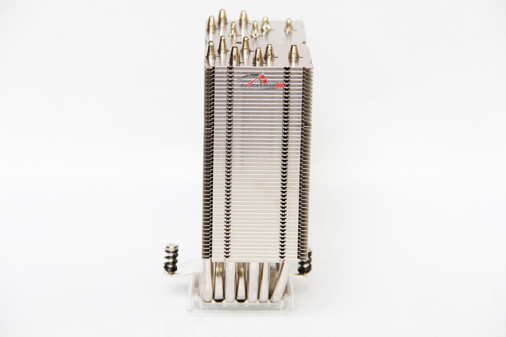 ตัว Heatsink ออกแบบให้มีความสูงเพียง 158mm. และหน้ากว้างเพียง 125mm. เท่านั้นเอง จึงทำให้มันไม่ใหญ่จนเกินไป การออกแบบให้มี Heatsink ขนาดที่ไม่ใหญ่มากเกินไป ทำให้ตัวมันเองไม่ไปติดหรือบังช่องเสียบ PCI-E Slot ช่องแรกของเมนบอร์ด ส่วนตัวพัดลมนั้นจะทำให้การติดตั้งมาให้ตั้งแต่ในกล่องเลยครับ โดยการจับยึดของตัวพัดลมกับ Heatsink ยังคงเป็นลวดยึดแบบเดิม