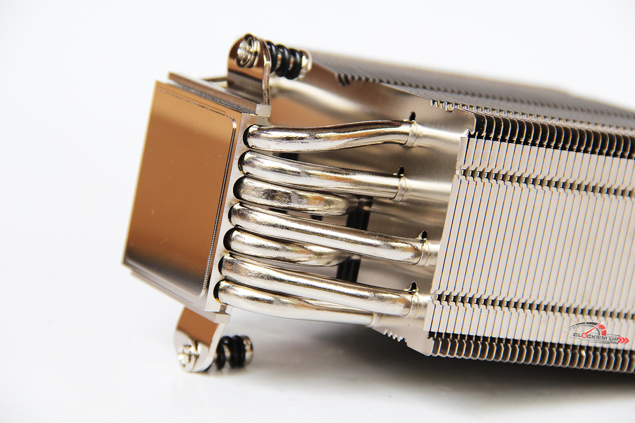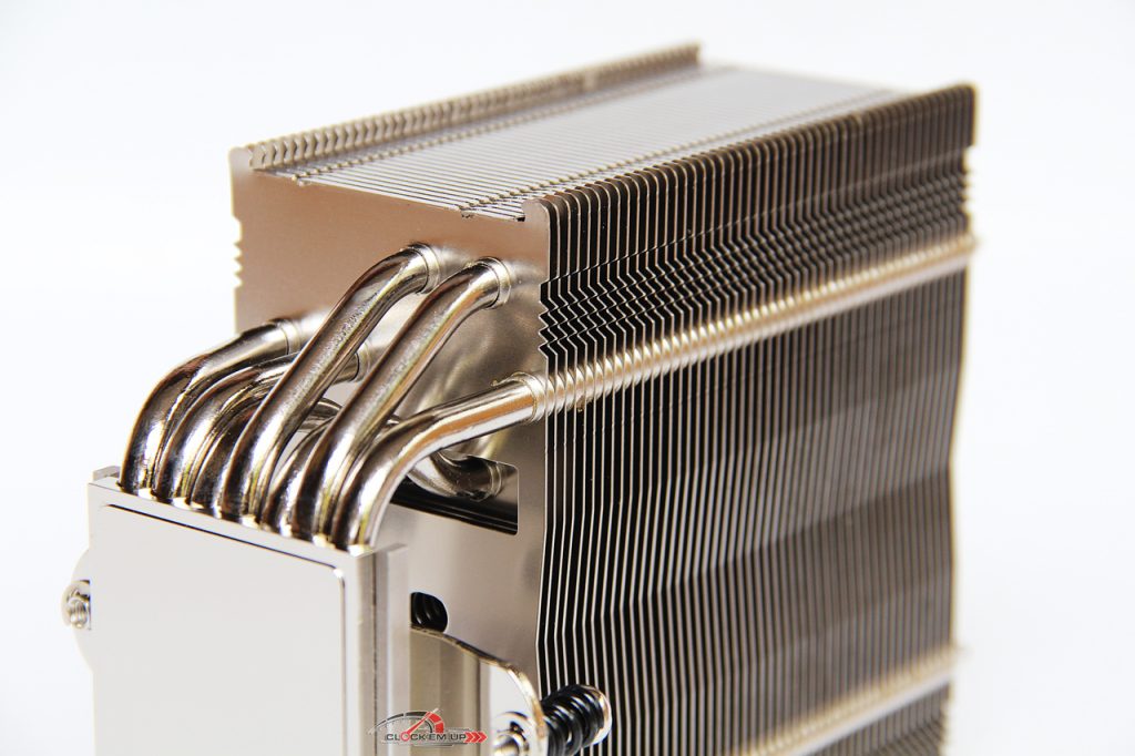 ตัว Heatsink นั้นจะหนาขึ้นกว่า NH-U12S อยู่ประมาณ 37% คือเพิ่มความหนาของครีบระบายความร้อนหรือ Fins ให้มากขึ้นนั่นเอง ส่วนท่อ Heatpipe ทองแดงนั้นได้เพิ่มเข้าไปถึง 7 เส้นด้วยกันครับ