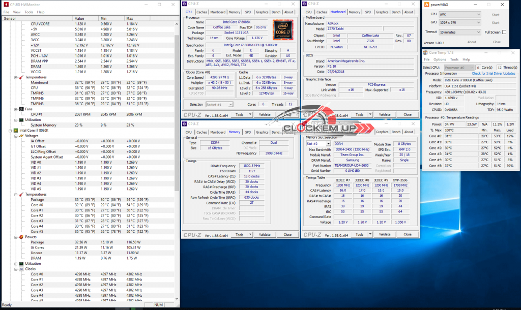 สำหรับรายละเอียดของการทดสอบของเราในครั้งนี้ก็คงเป็นในมาตราฐานของการทดสอบ Heatsink ของเราแบบทุกๆ รีวิวนั่นคือการ Burn-In CPU 100% ด้วยโปรแกรม powerMAX : AVX เป็นเวลา 10 นาที แล้วเก็บผลการทดสอบความร้อนของ CPU ที่ใช้เป็นโหลดก็คือ Intel Core i7-8086K 6C/12T ผ่ากระดองแล้วด้วย Liquid Gallium โดยจะทดสอบทั้งหมด 3 ระดับความเร็วของ CPU ด้วยกันคือความเร็วเดิมๆ 4.3/4.0Ghz, OC 5.0/4.8Ghz 1.30V และ 5.1/4.8Ghz 1.36V ส่วนผลการทดสอบจะเป็นอย่างไรนั้นไปชมกันเลยครับ