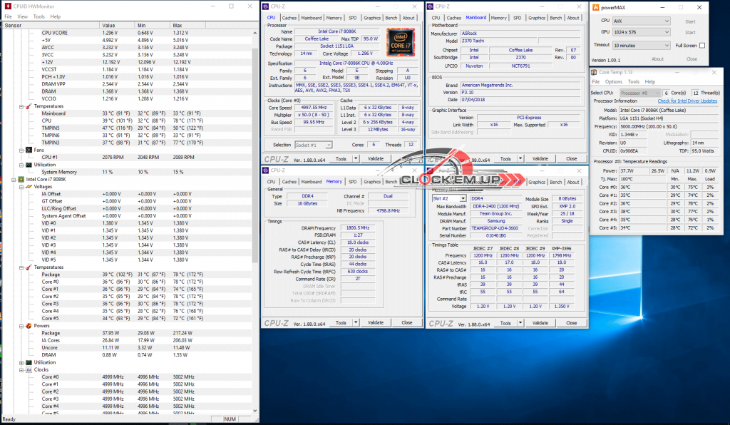 : 5.0Ghz/Cache 4.8Ghz Vcore 1.30V