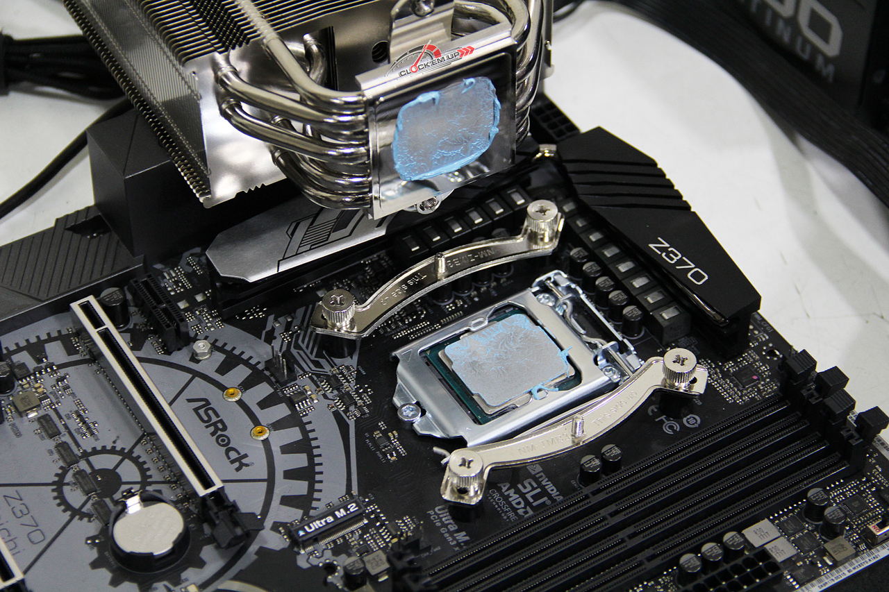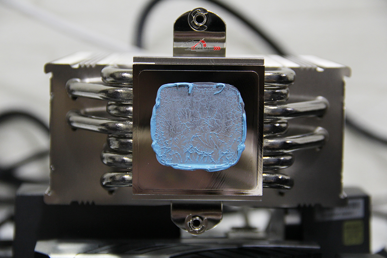 การรีดซิลิโคนของตัว Heatsink บริเวณหน้าสัมผัสของ CPU และ Base นั้นยังคงทำได้ดีเหมือนเดิมครับ เพราะค่ายนี้จะใช้น๊อต + สปริงที่มีแรงกดค่อนข้างดีมาก จึงทำให้การรีดซิลิโคนทำได้ดีเลยทีเดียว โดนซิลิโคนที่เราใช้งานครั้งนี้ก็ยังคงเป็น Kinpin KPx เนื้อสีน้ำเงินเหมือนเดิมครับ