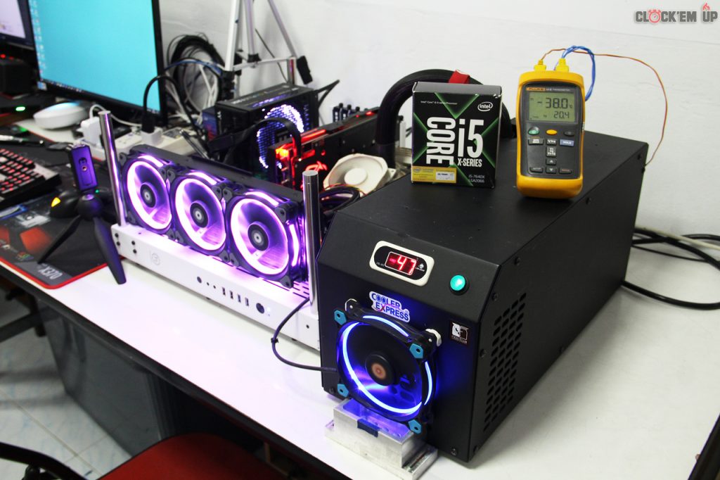 สวัสดีครับ วันนี้กระผมนาย Audigy มีผลการทดสอบแบบ Mini Extreme Benchmark ด้วย CPU Intel Core i5-7640X 4C/4T [Kabylake-X 14nm.] Socket LGA-2066 ที่ระบายความร้อนด้วยด้วย Single Stage Phase Change จากทาง Cooler Express รุ่น CE-48-S-1C(2011) โดยสามารถทำอุณหภูมิที่หัว Evap ได้เย็นสุดๆ ประมาณ -48c ถึง -51c องศาเซลเซียสโดยประมาณครับ และผลการทดสอบในครั้งนี้ก็ทำให้เราสามารถได้เห็น CPU Intel Core i5-7640X ตัวนี้ Overclock ขึ้นไปที่ความเร็วกว่าระดับ 5.66Ghz ถึง 6.0Ghz ได้แบบไม่ยากเย็นเลย ด้วยไฟเลี้ยงเพียง 1.44v ถึง 1.54v เท่านั้นเอง ก่อนที่จะไปชมผลการ Benchmark ต่างๆ นั้นเราไปชมรายละเอียดของชุดทดสอบนี้กันเลยดีกว่าว่า ประกอบไปด้วยอะไรกันบ้าง